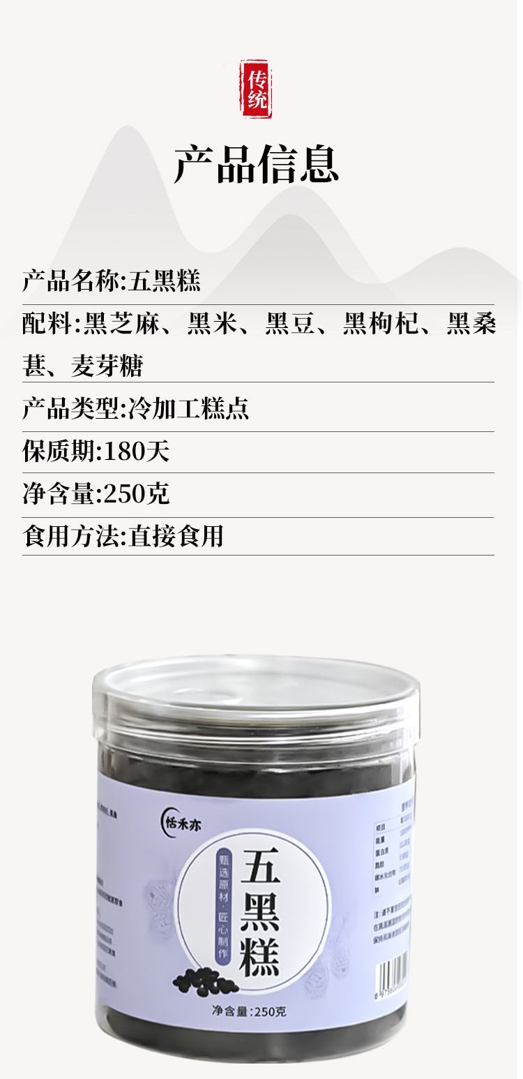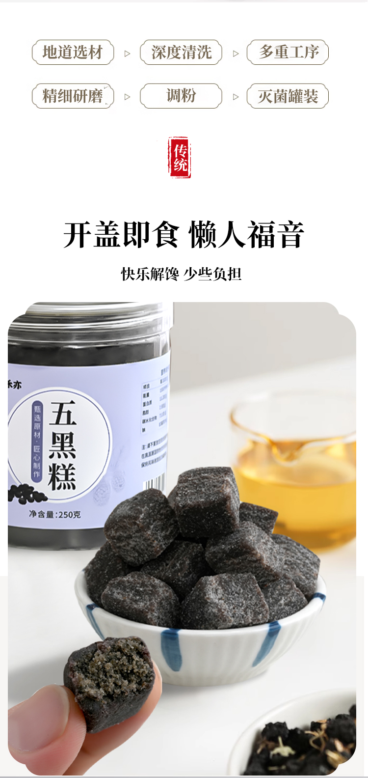 【2送1,3送2】恬禾亦·五黑糕 食养同源 养生小零食 坚持古法 手工制作 不添加蔗糖 250g