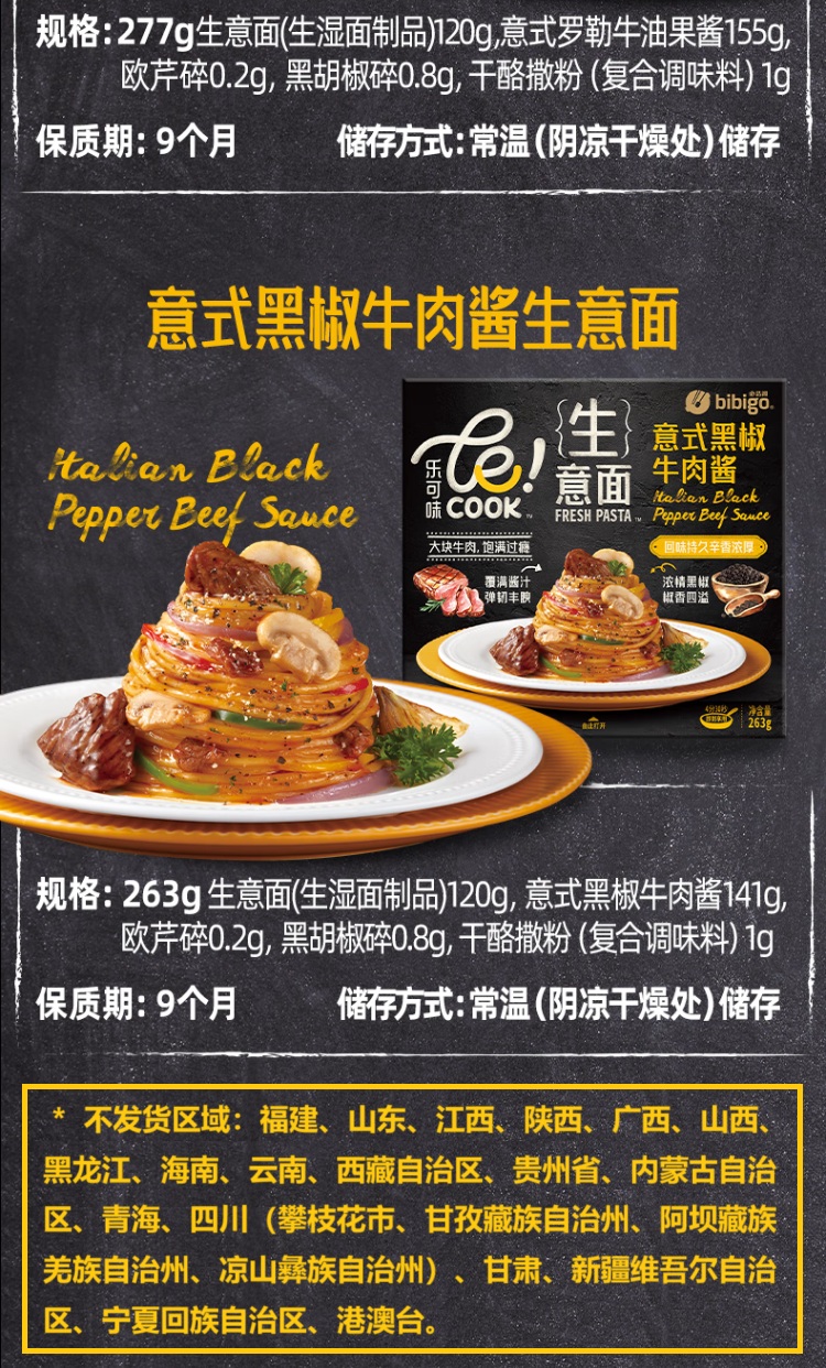 必品阁 生意面*4(黑椒牛肉263g+番茄牛肉252g+奶油培根252g+罗勒牛油果277g)
