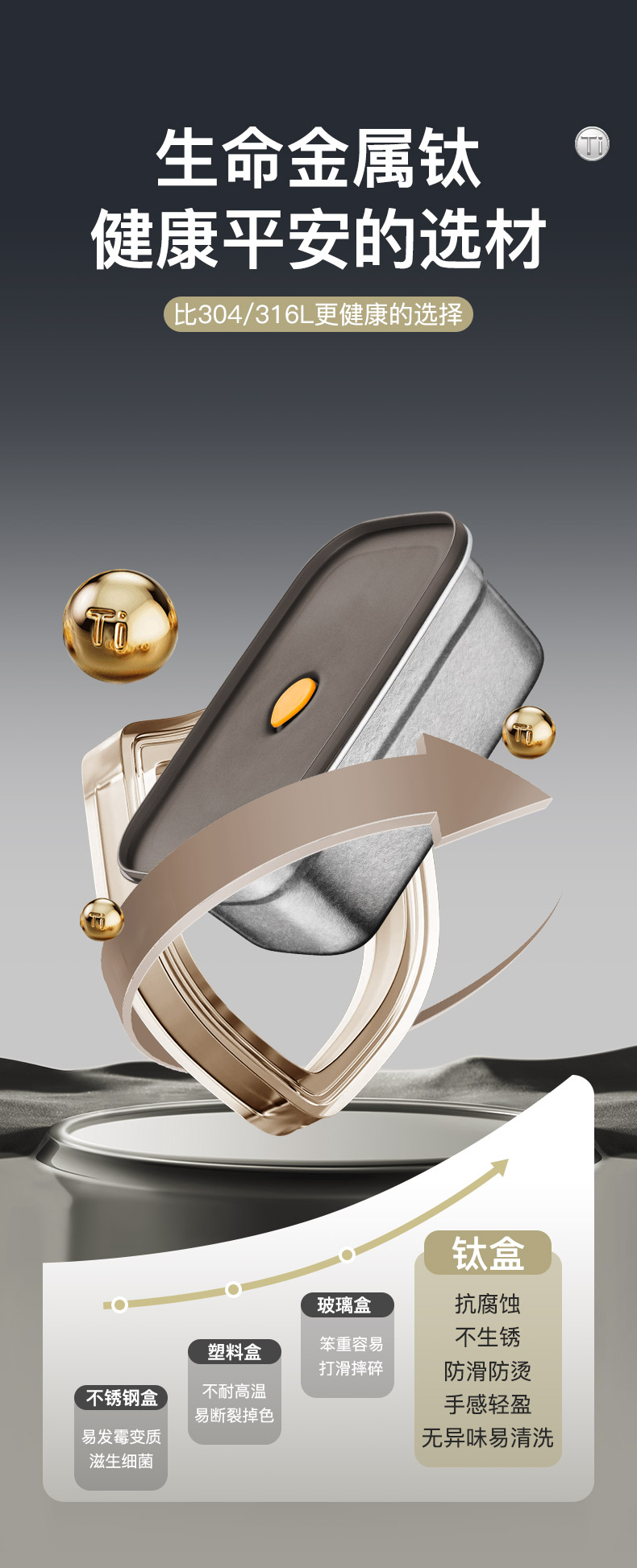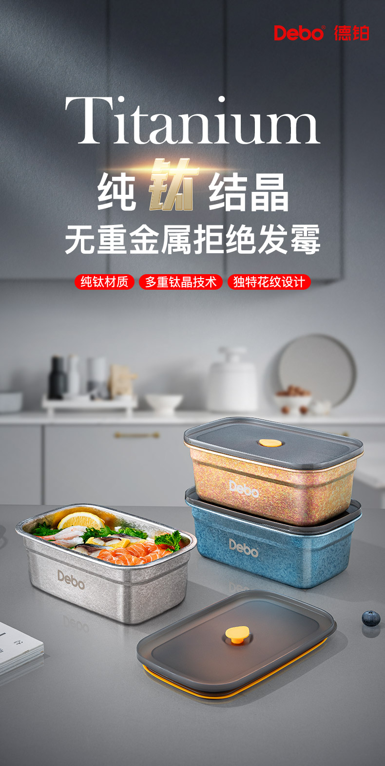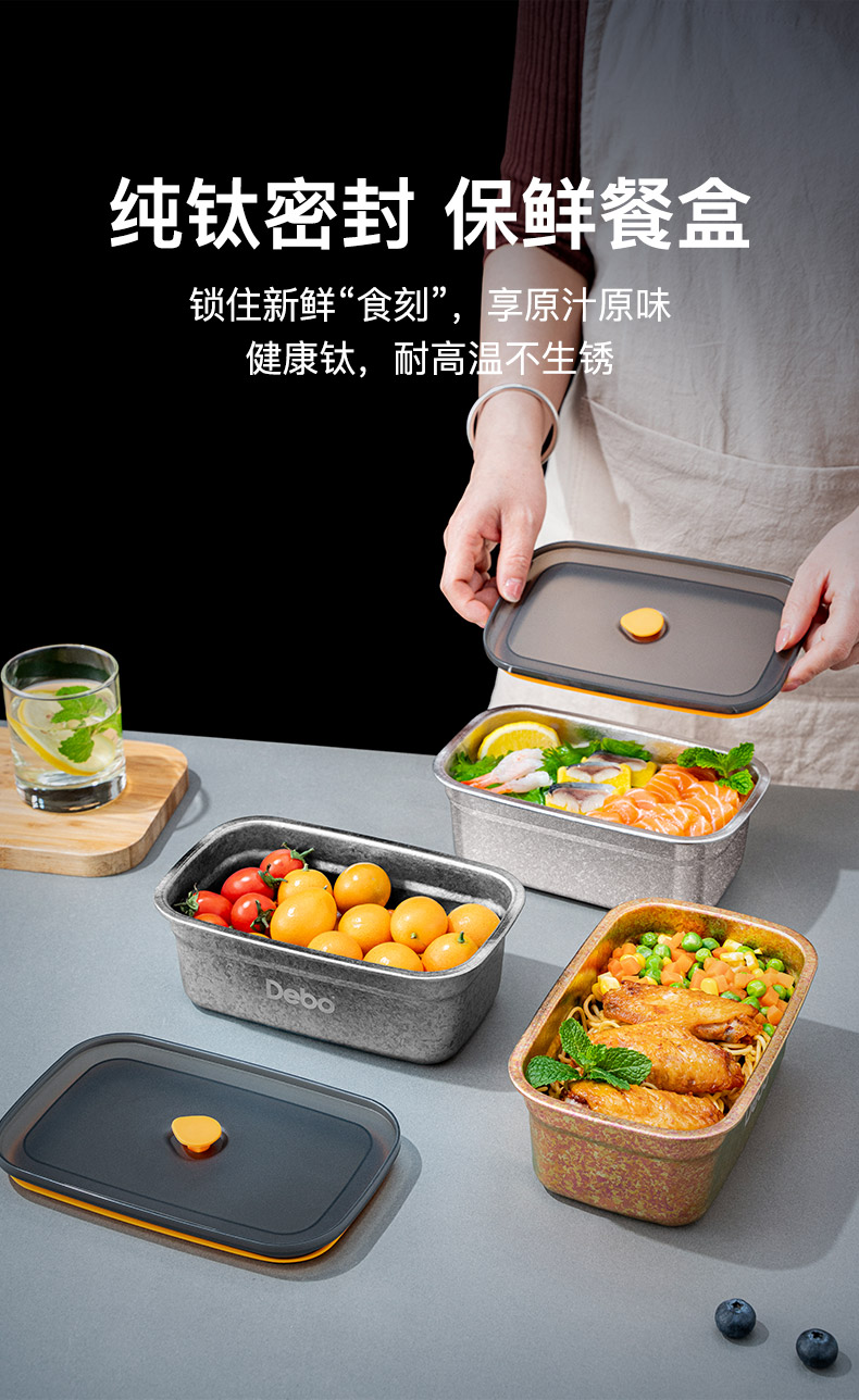 Debo德铂-阿加莎钛饭盒1000ml 无重金属拒绝发霉 不串味无异味持久保鲜