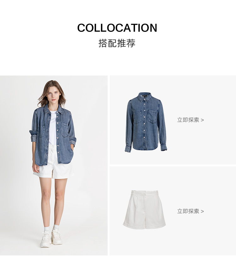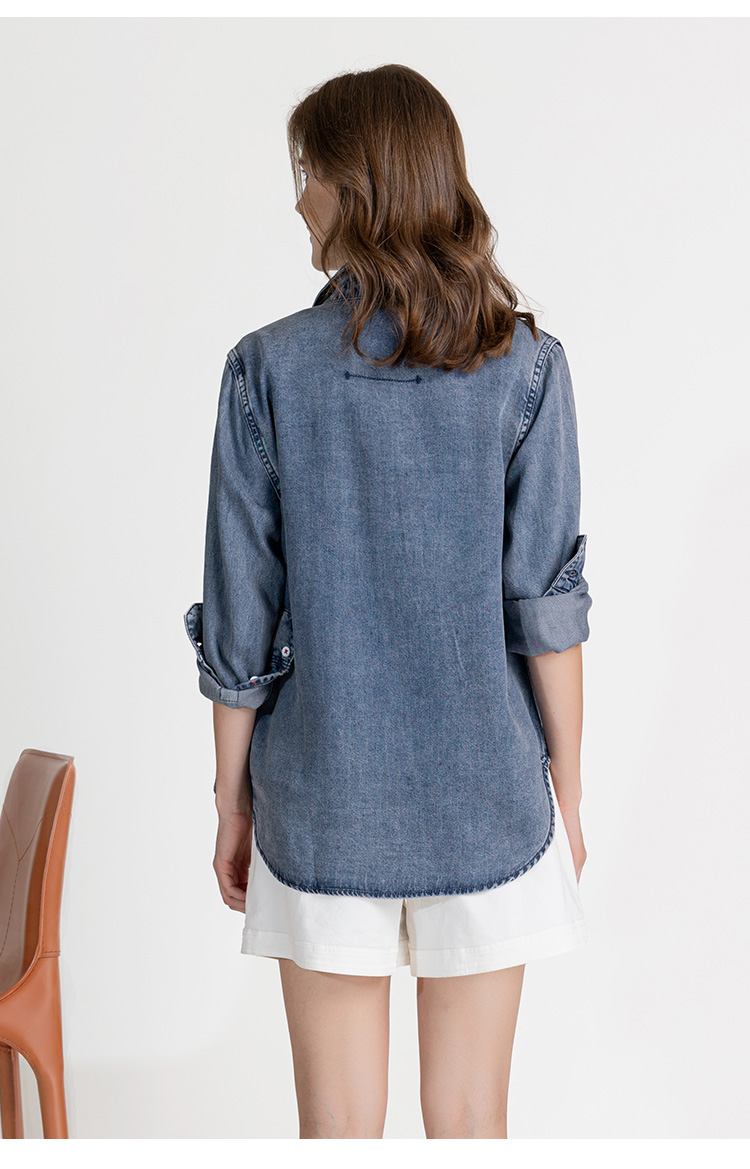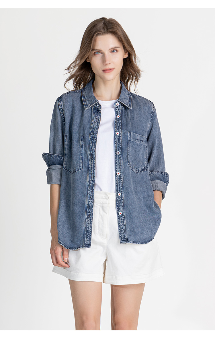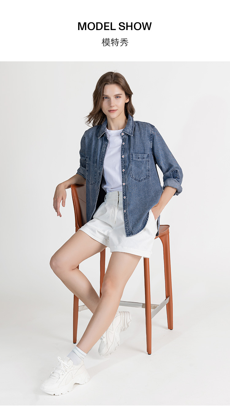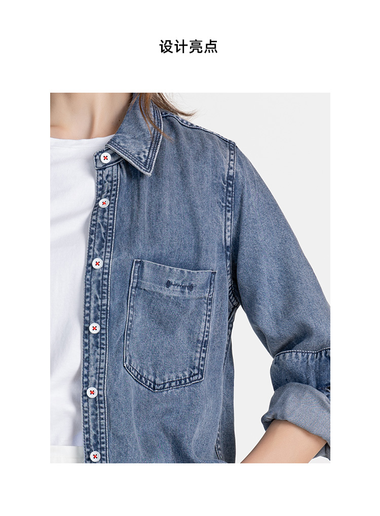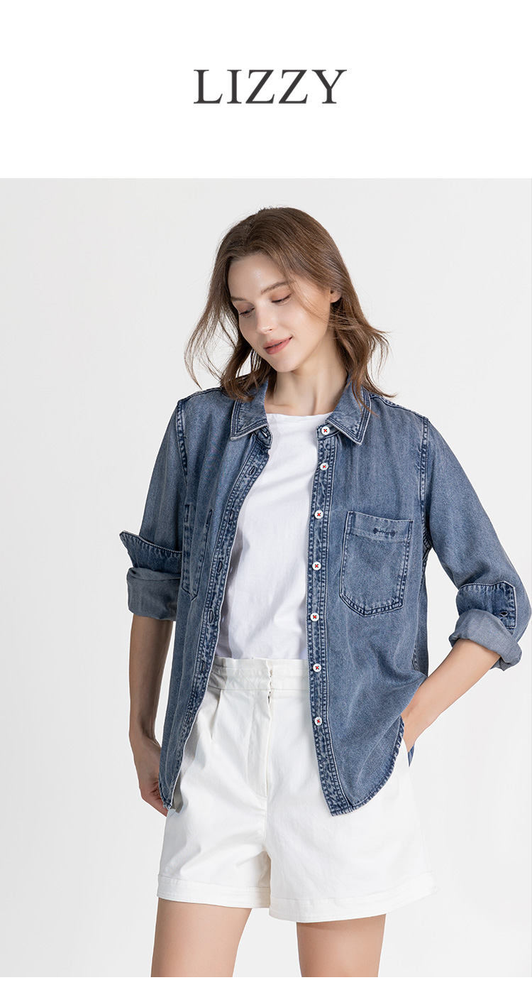 LIZZY早秋休闲百搭舒适天丝洗水牛仔衬衫8136