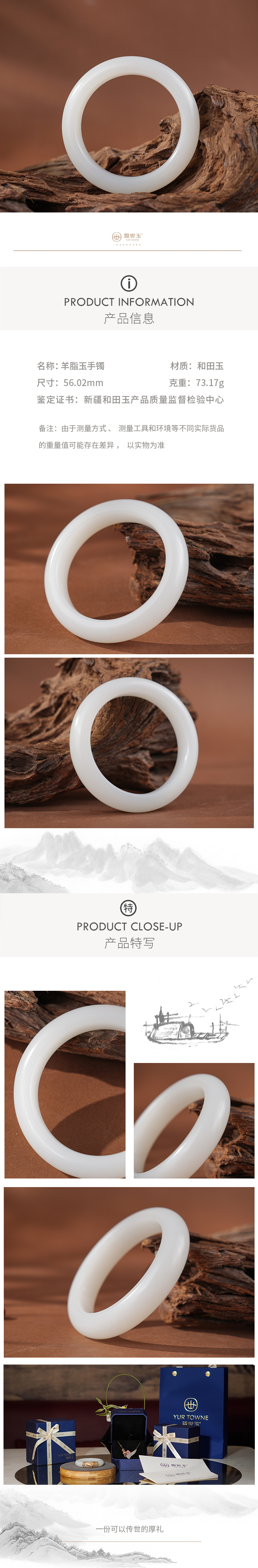【芙蓉脂】羊脂白玉手镯(56.0)mm
