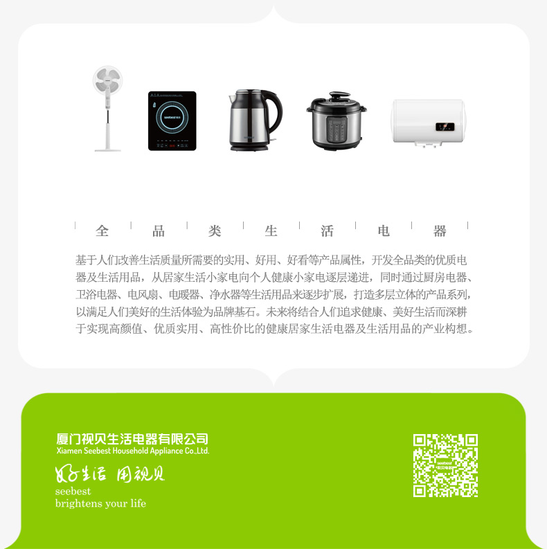 厦门视贝科技有限公司是集产品自主设计,研发,生产,销售于一体的高科技企业。拥有80000平方米的制造厂房,核心员工2000多人。产品线涵盖照明、电工,卫浴,线路,集成风暖等领域。