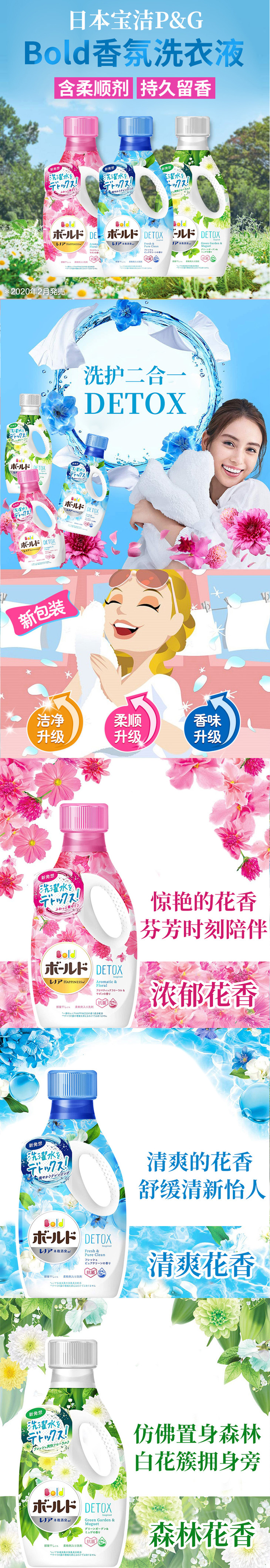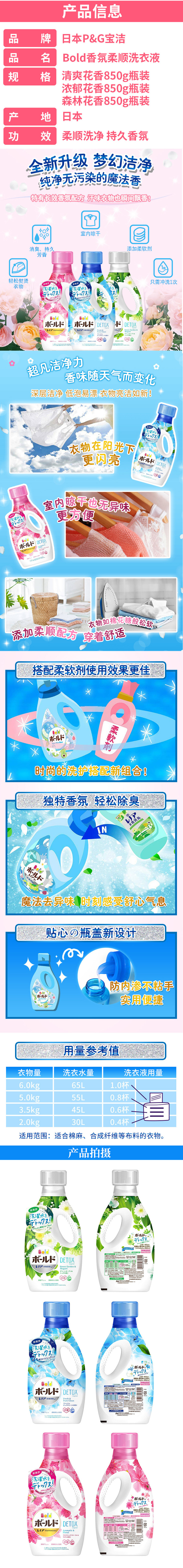 日本 宝洁bold 花香洗衣液 含柔顺剂花香子无荧光剂护色除菌 850g