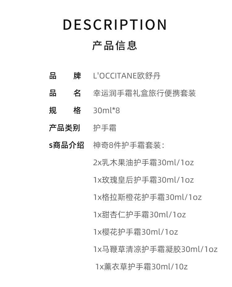 欧舒丹护手霜8件套 QM