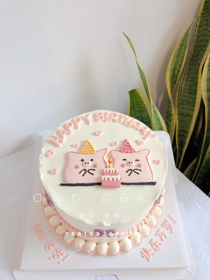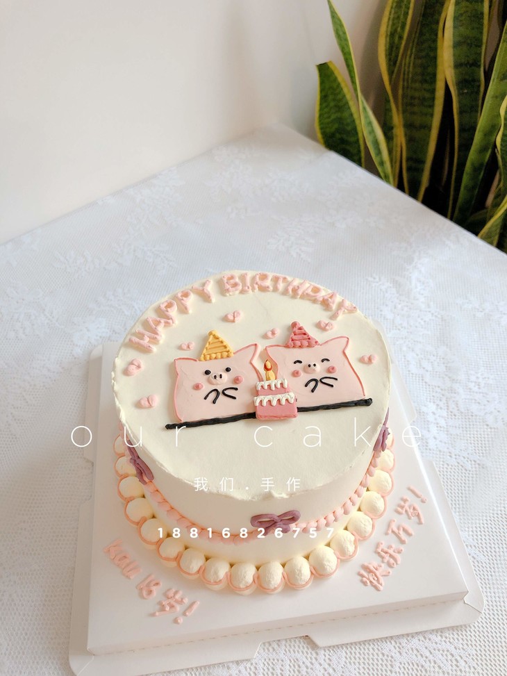 手绘-粉色情侣/姐妹/兄妹猪猪-低糖处理无添加
