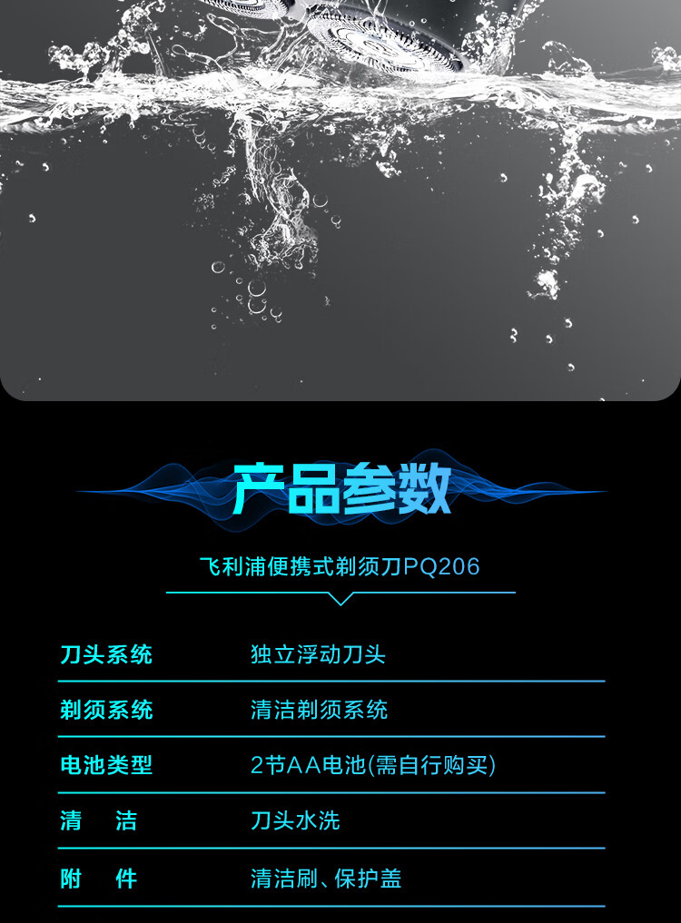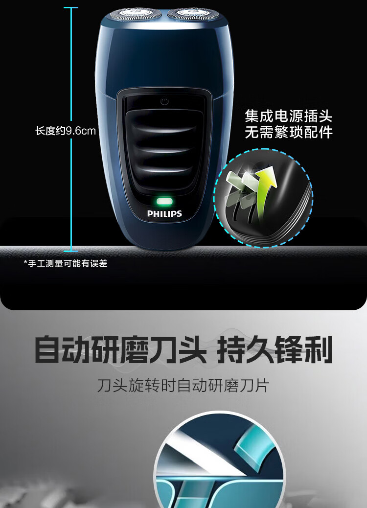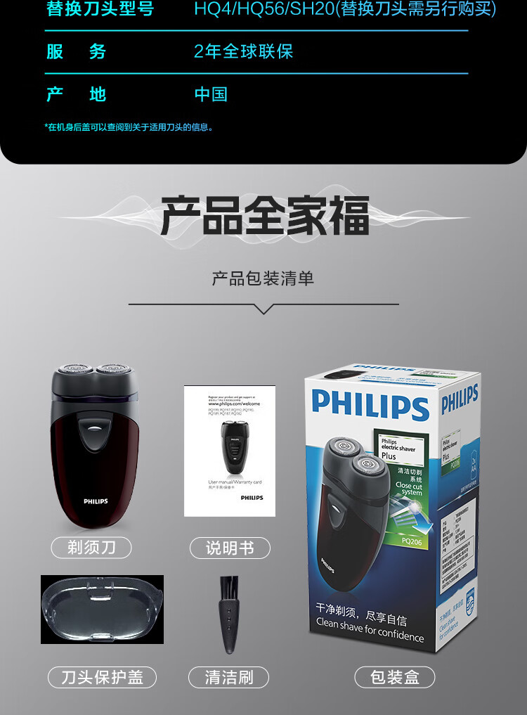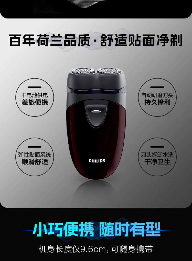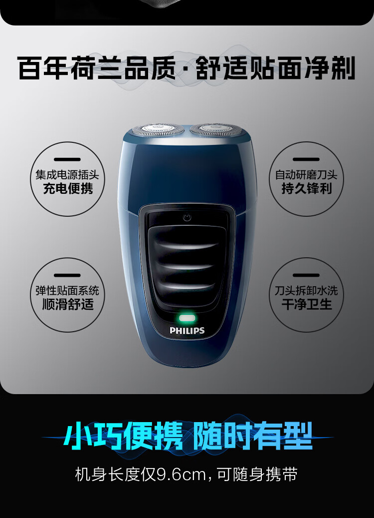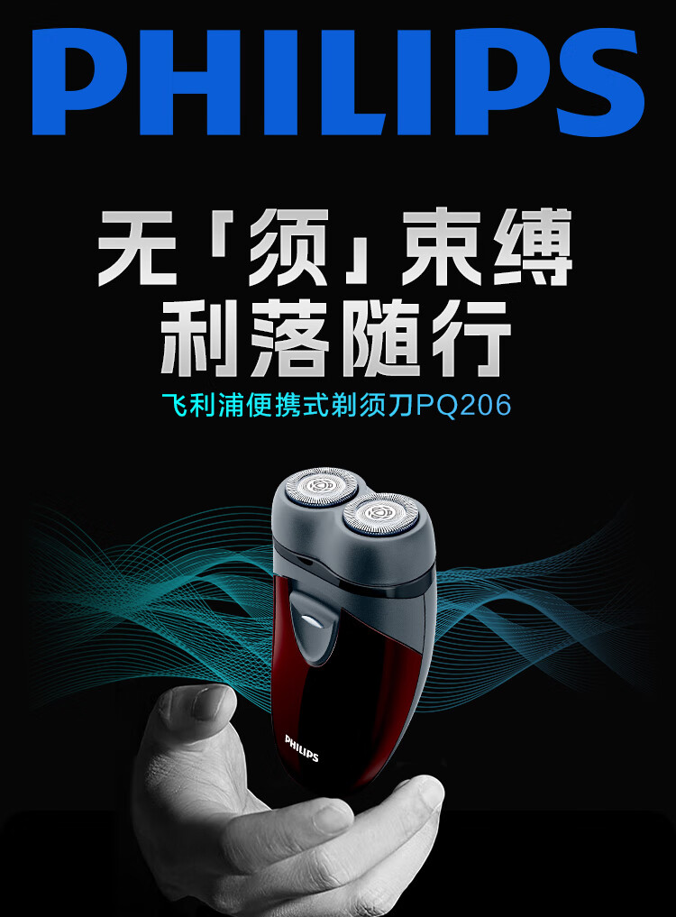 飞利浦 差旅便携剃须刀 PQ206/18 持久锋利 顺滑舒适