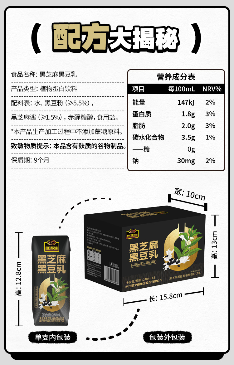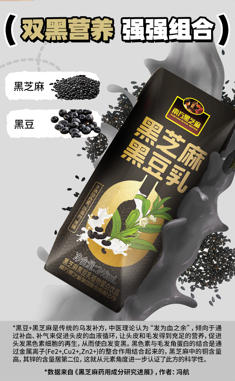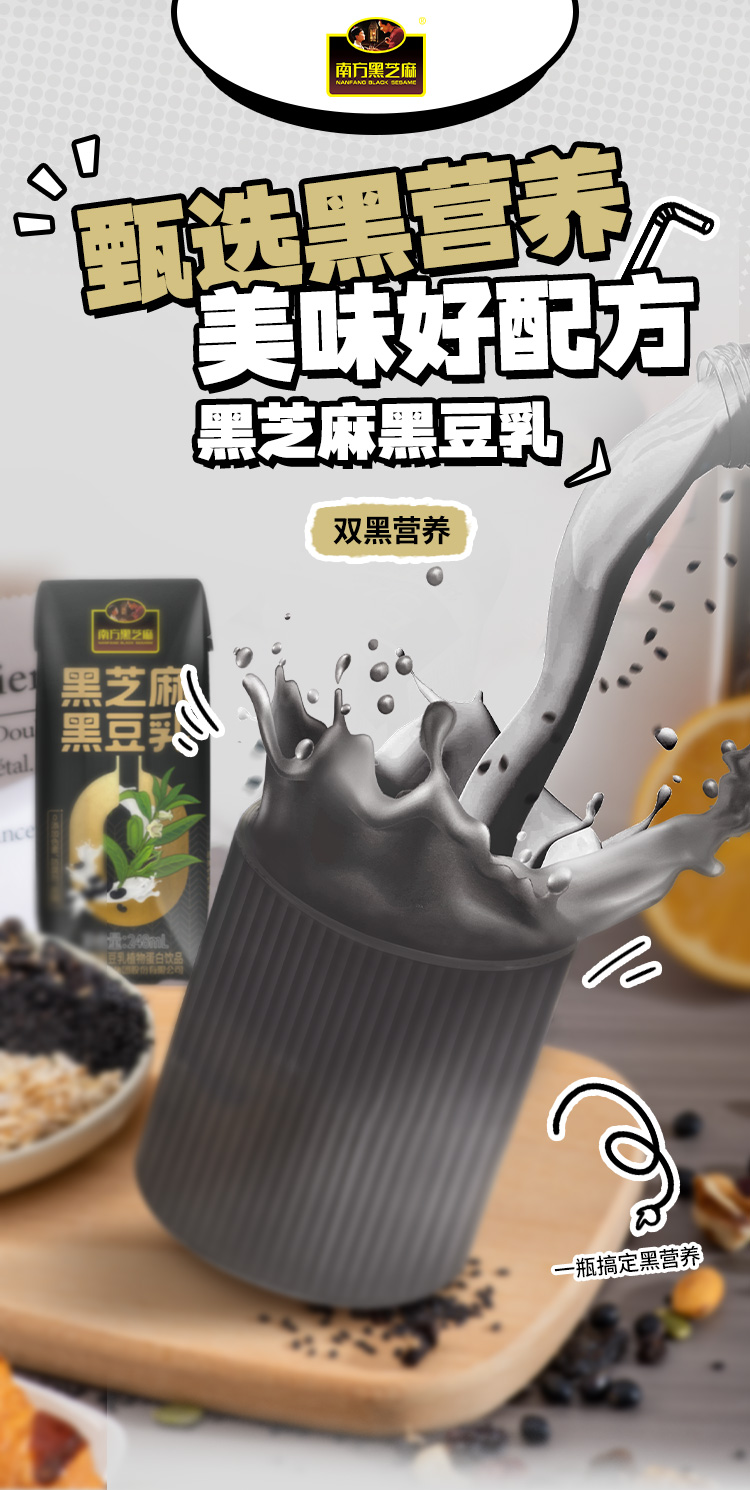 南方黑芝麻黑豆乳248ml*6支高钙植物蛋白蛋白乳饮品营养健康早餐代餐谷物饮
