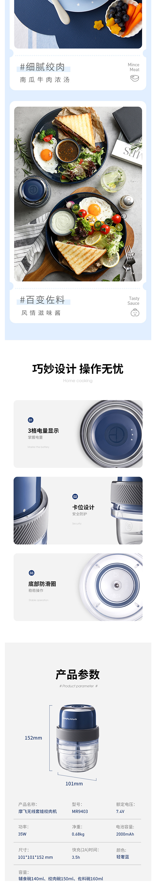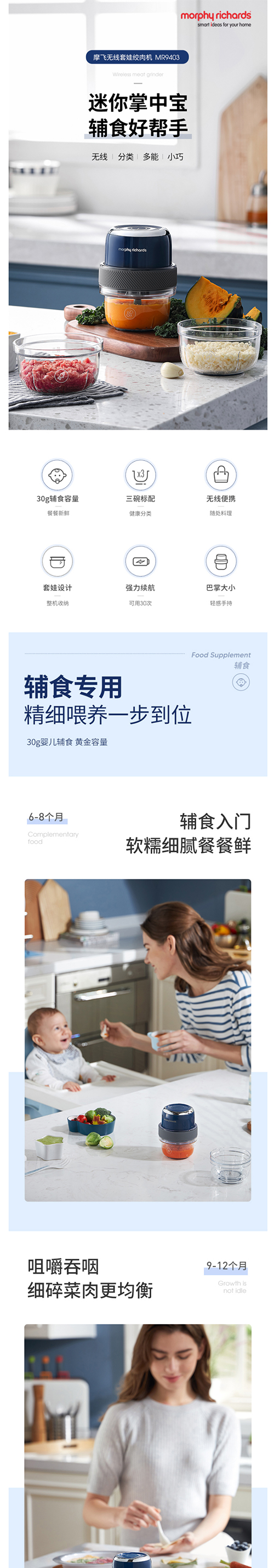 摩飞电器(Morphyrichards)绞肉机辅食机家用电动全自动多功能小型绞馅机碎肉搅肉搅拌机MR9403