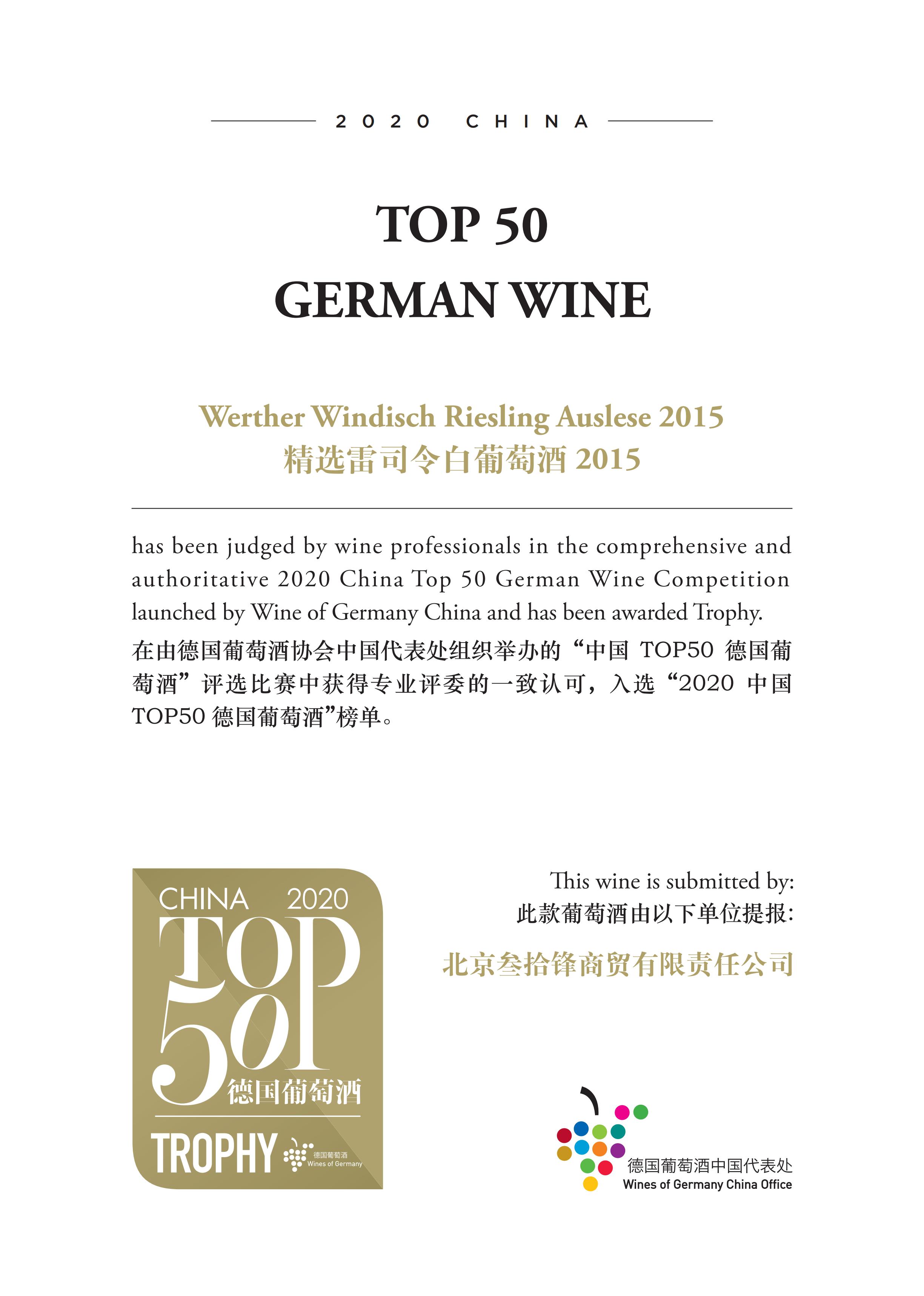 2015维尔特温迪施精选雷司令甜白 葡萄酒Werther Windisch 2015 Riesling Auslese