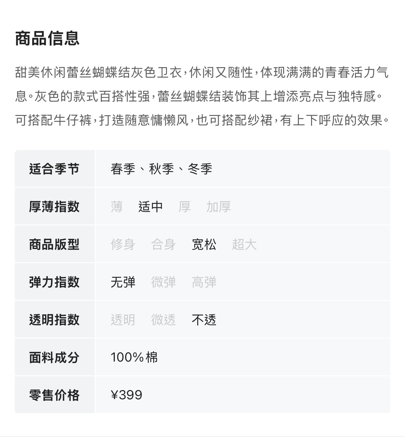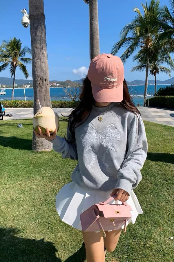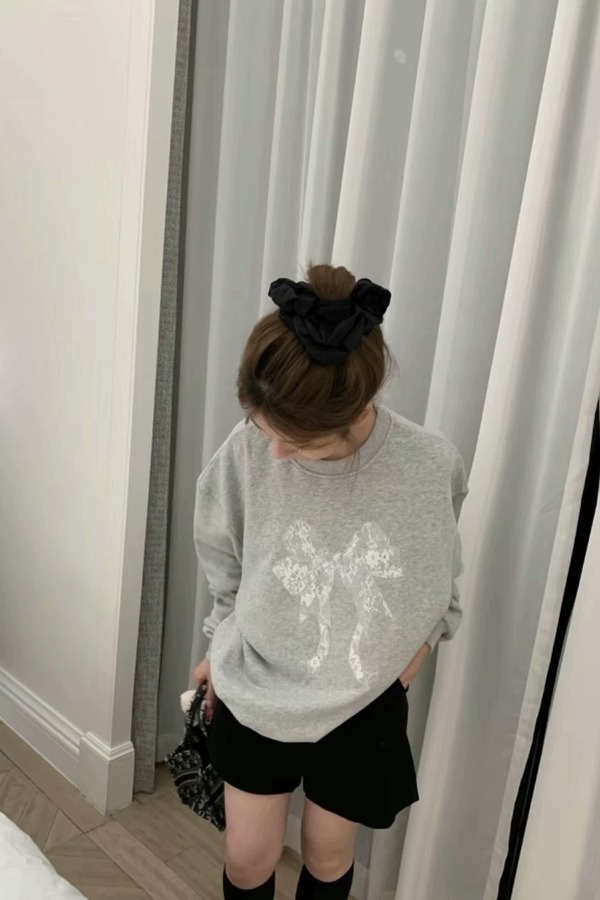 HAYES 甜美休闲蕾丝蝴蝶结灰色卫衣 21041