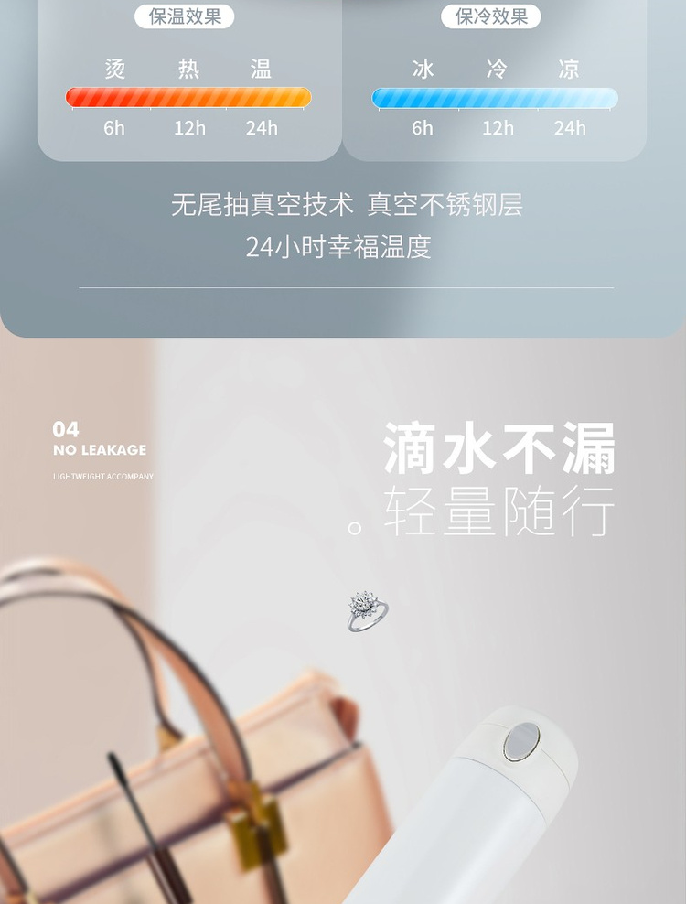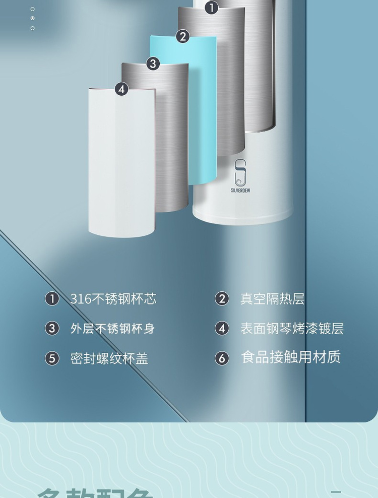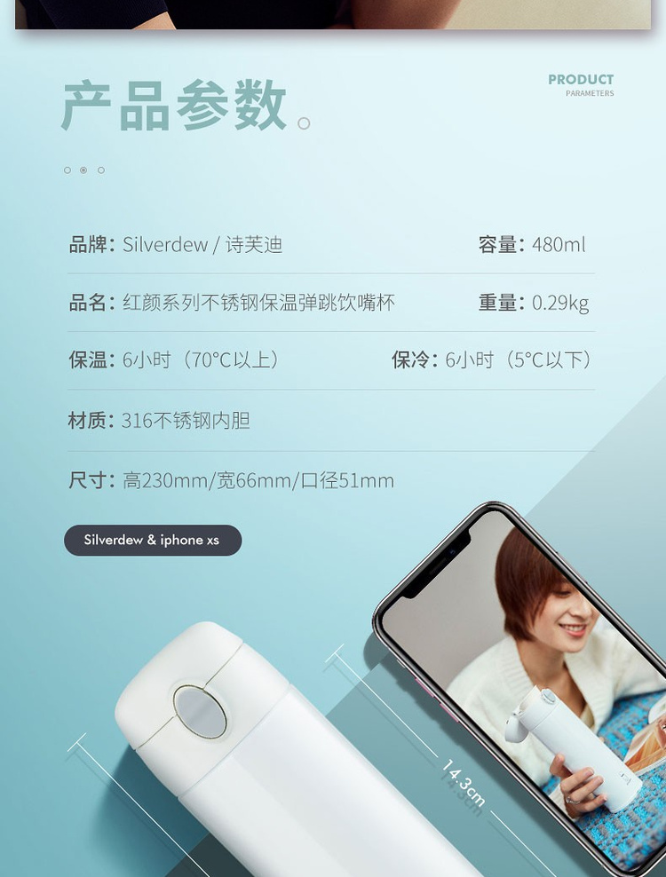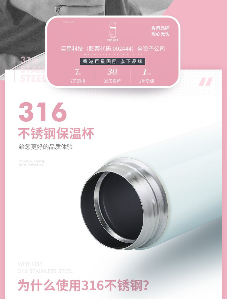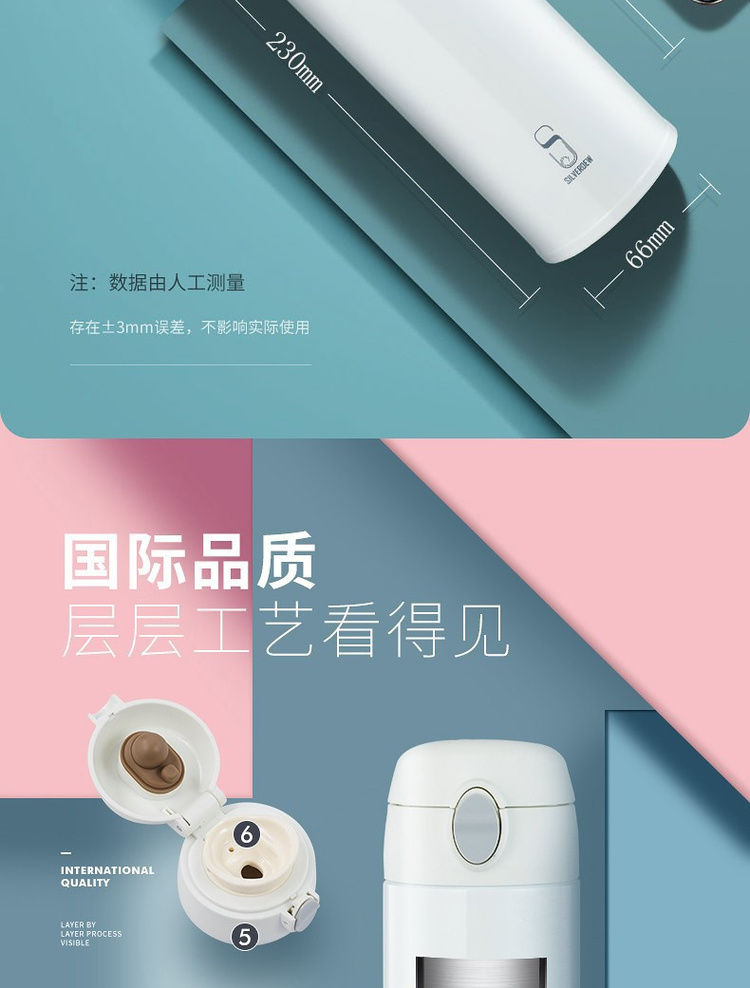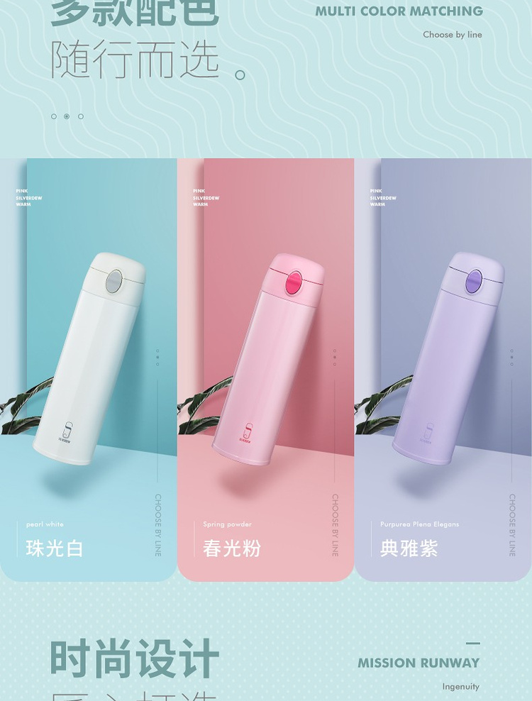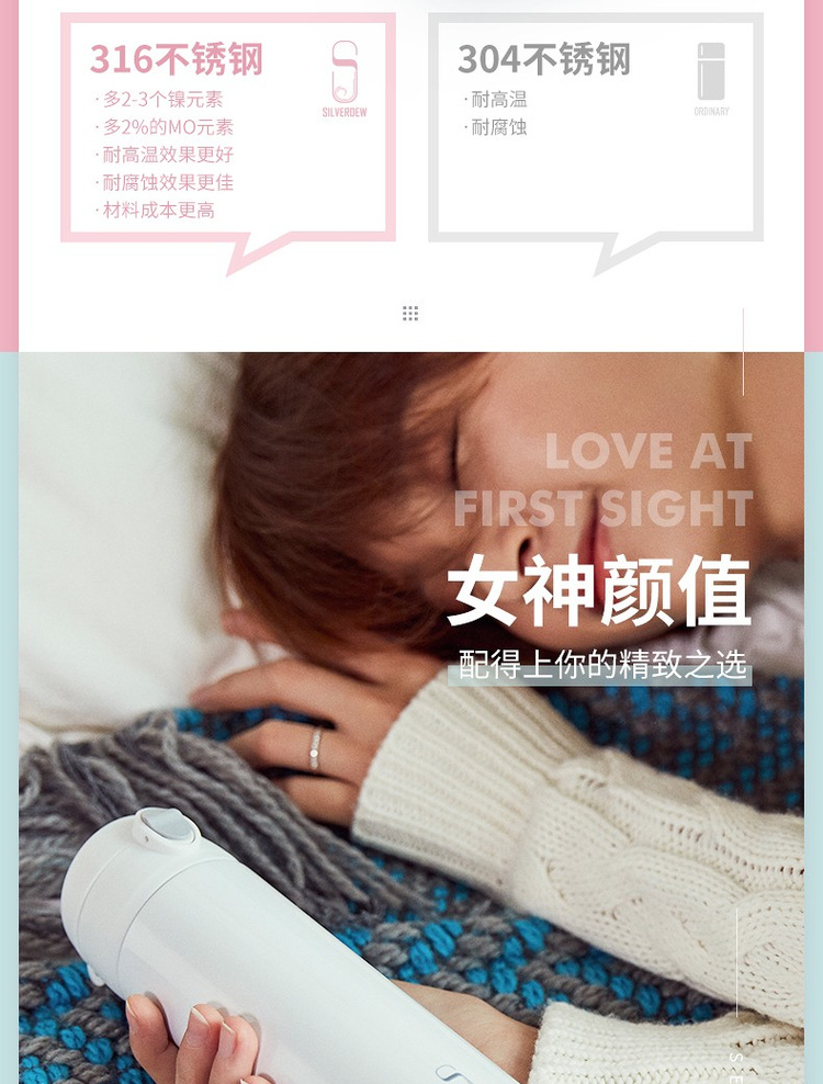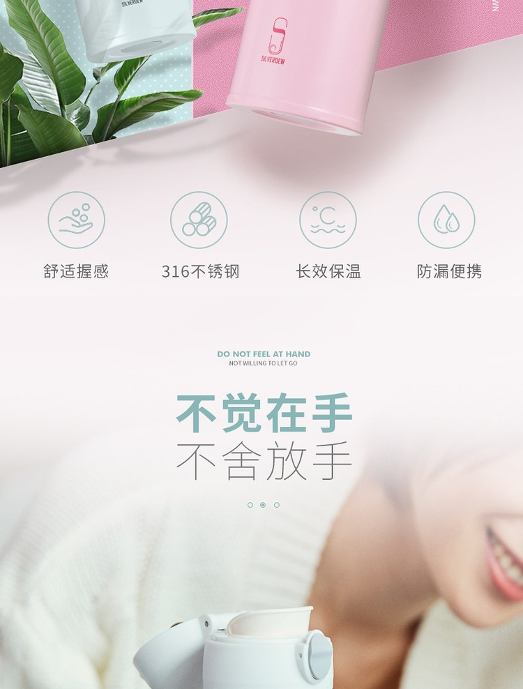 诗芙迪(SILVERDEW)316不锈钢保温杯女士便携水杯子红颜480ml