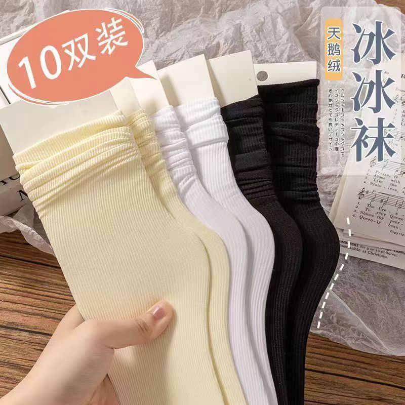 「19.9到手10双!夏季冰冰袜」高颜值女士夏季透气冰凉袜子 松口堆堆纯色月子袜女配饰