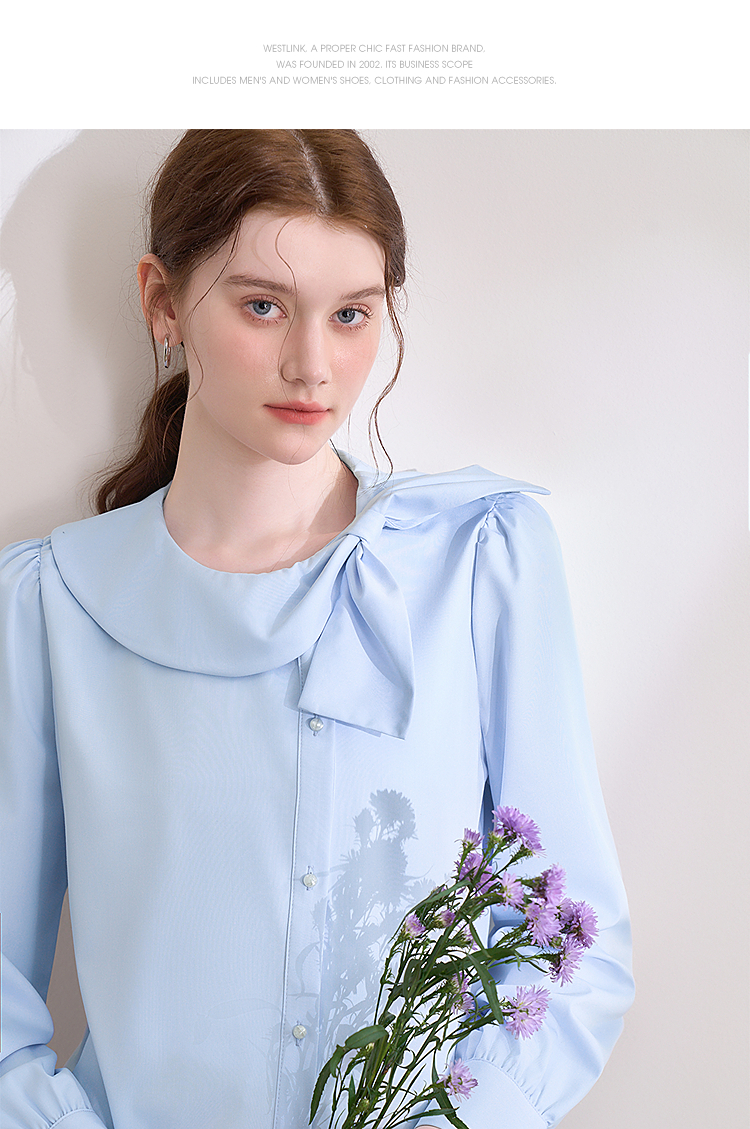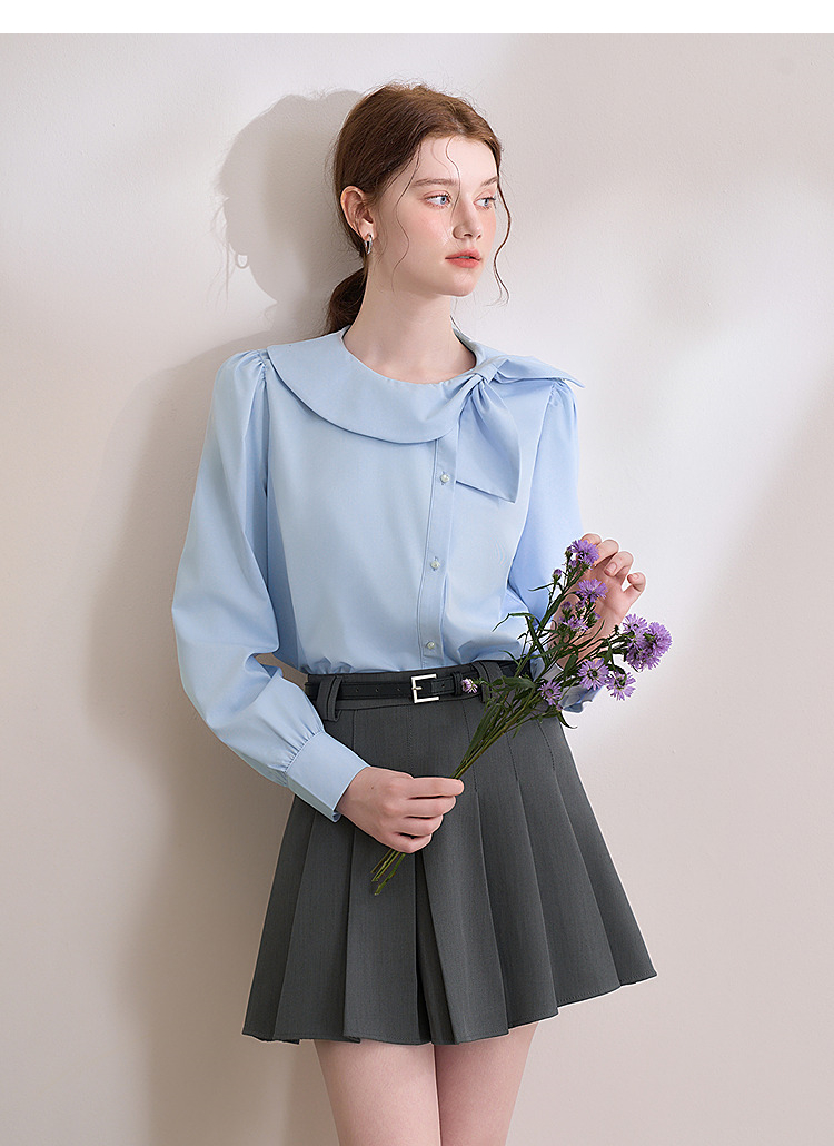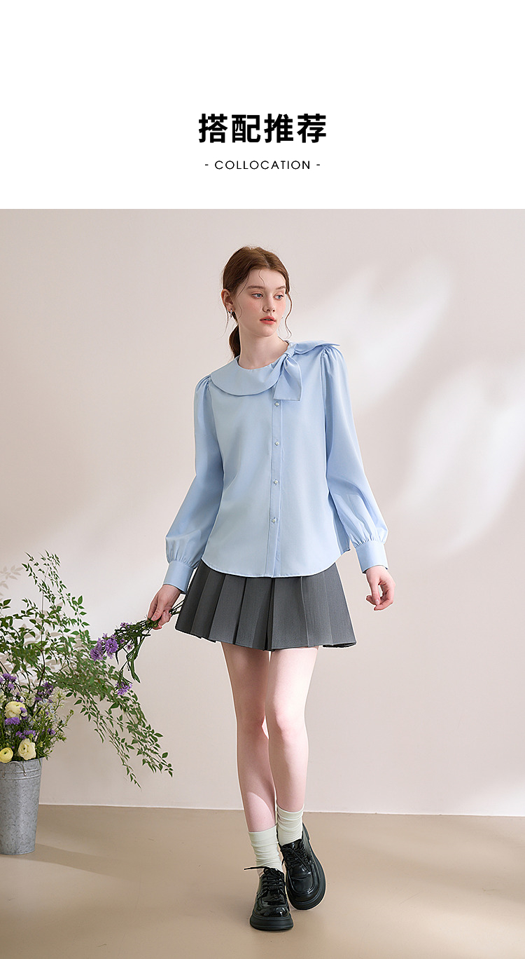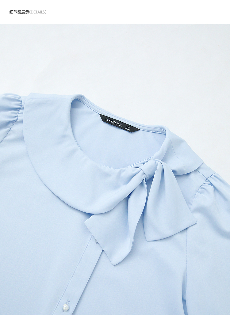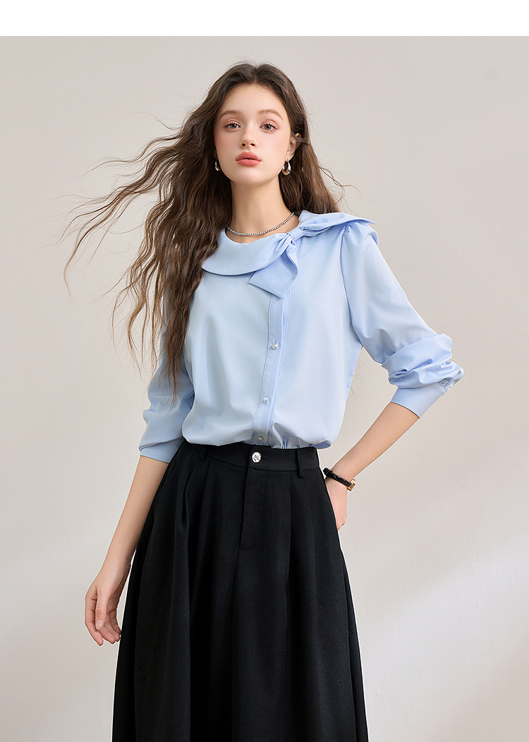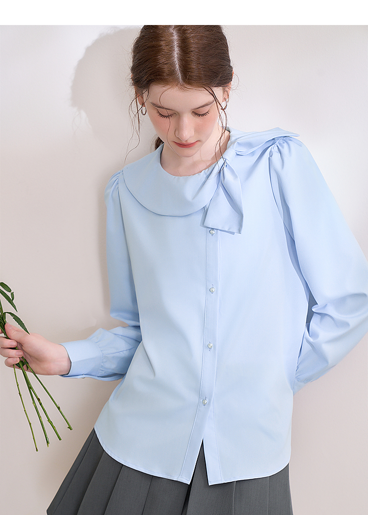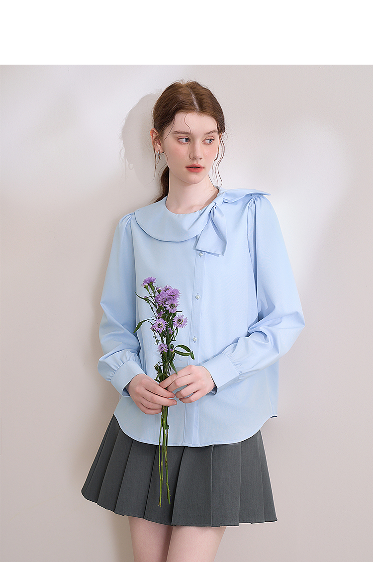 设计感娃娃领蝴蝶结绑带衬衫女气质垂感泡泡袖衬衣V0250137
