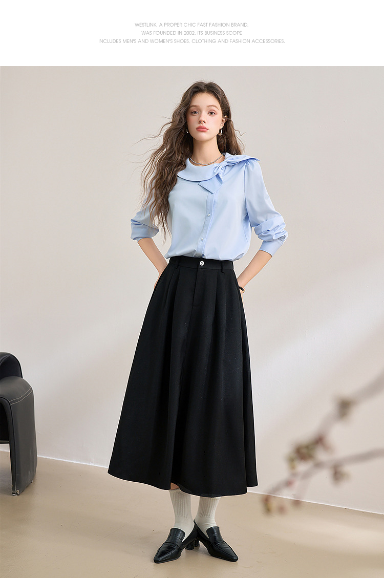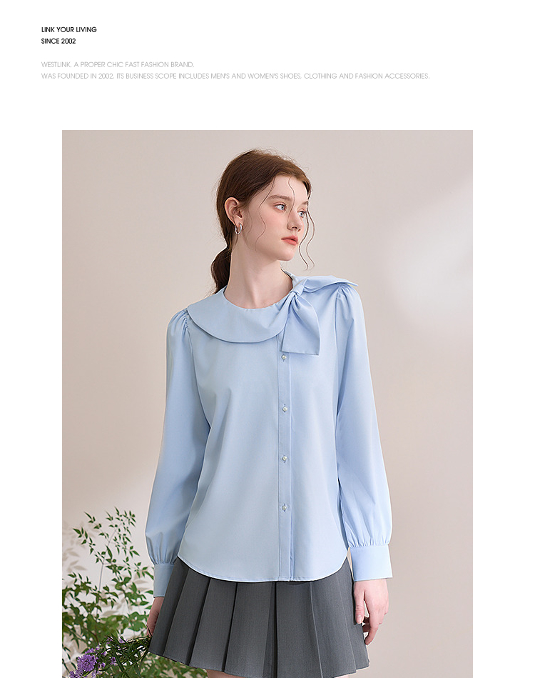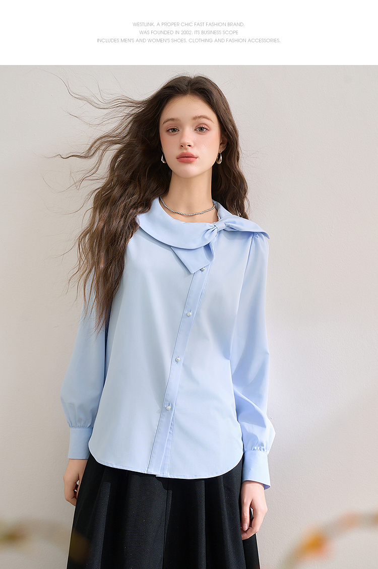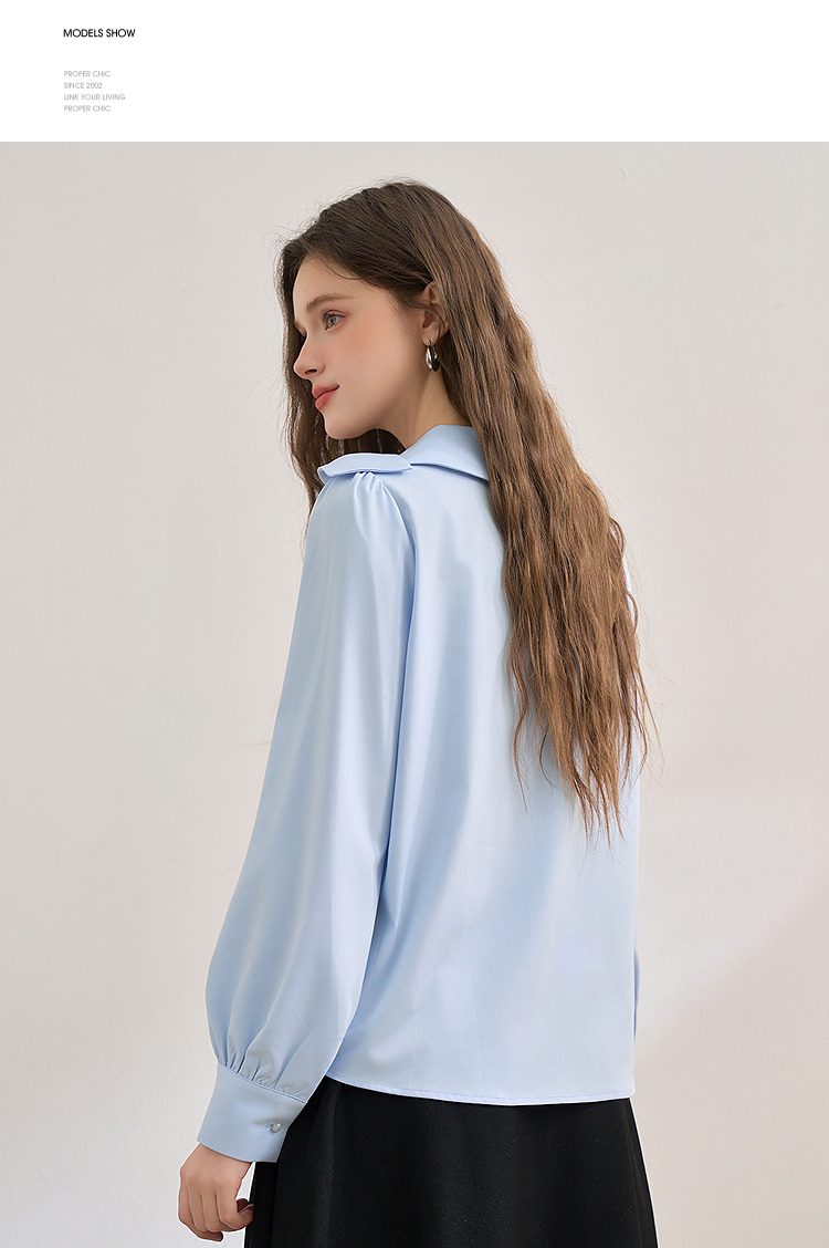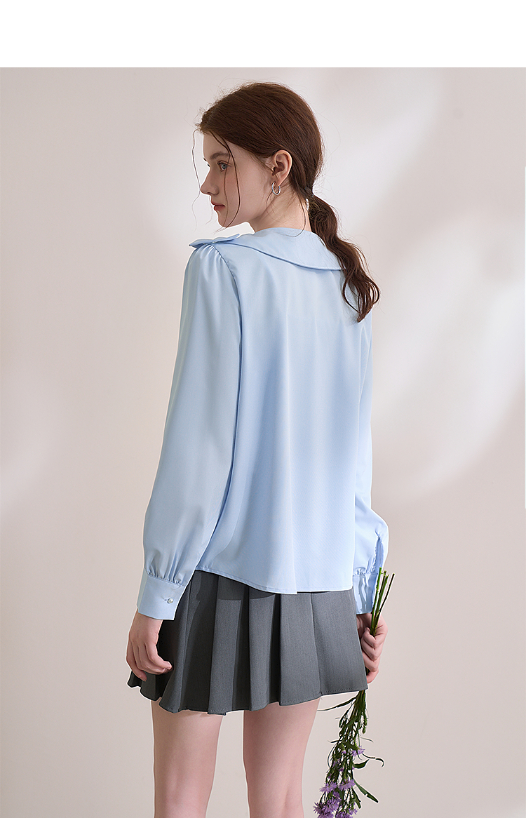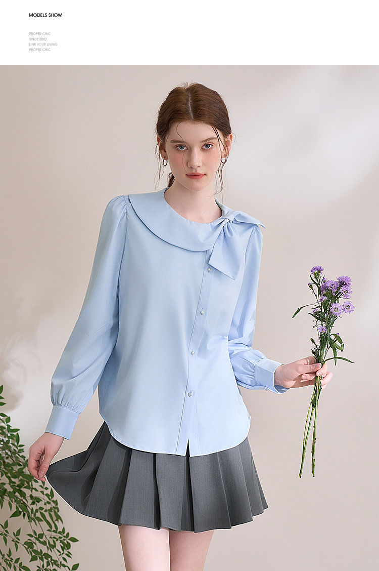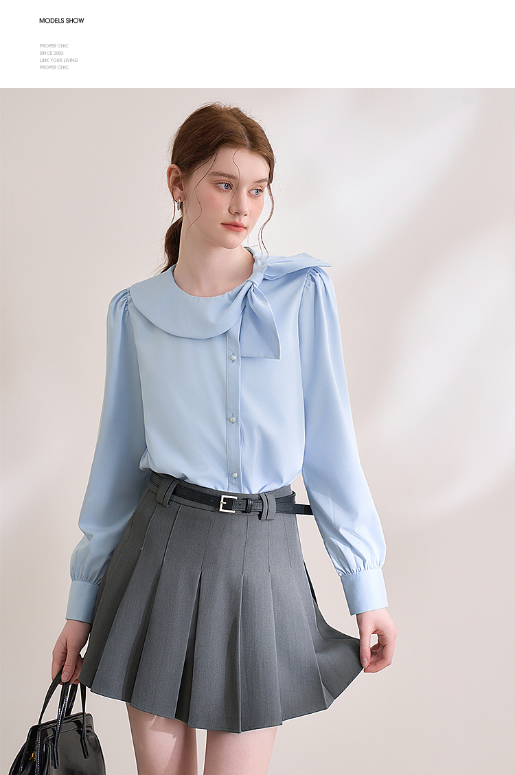 设计感娃娃领蝴蝶结绑带衬衫女气质垂感泡泡袖衬衣V0250137