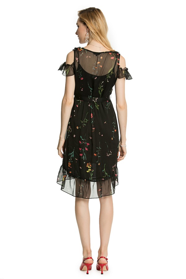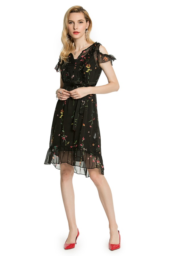 LA Collection 黑色露肩印花连衣纱裙 3280