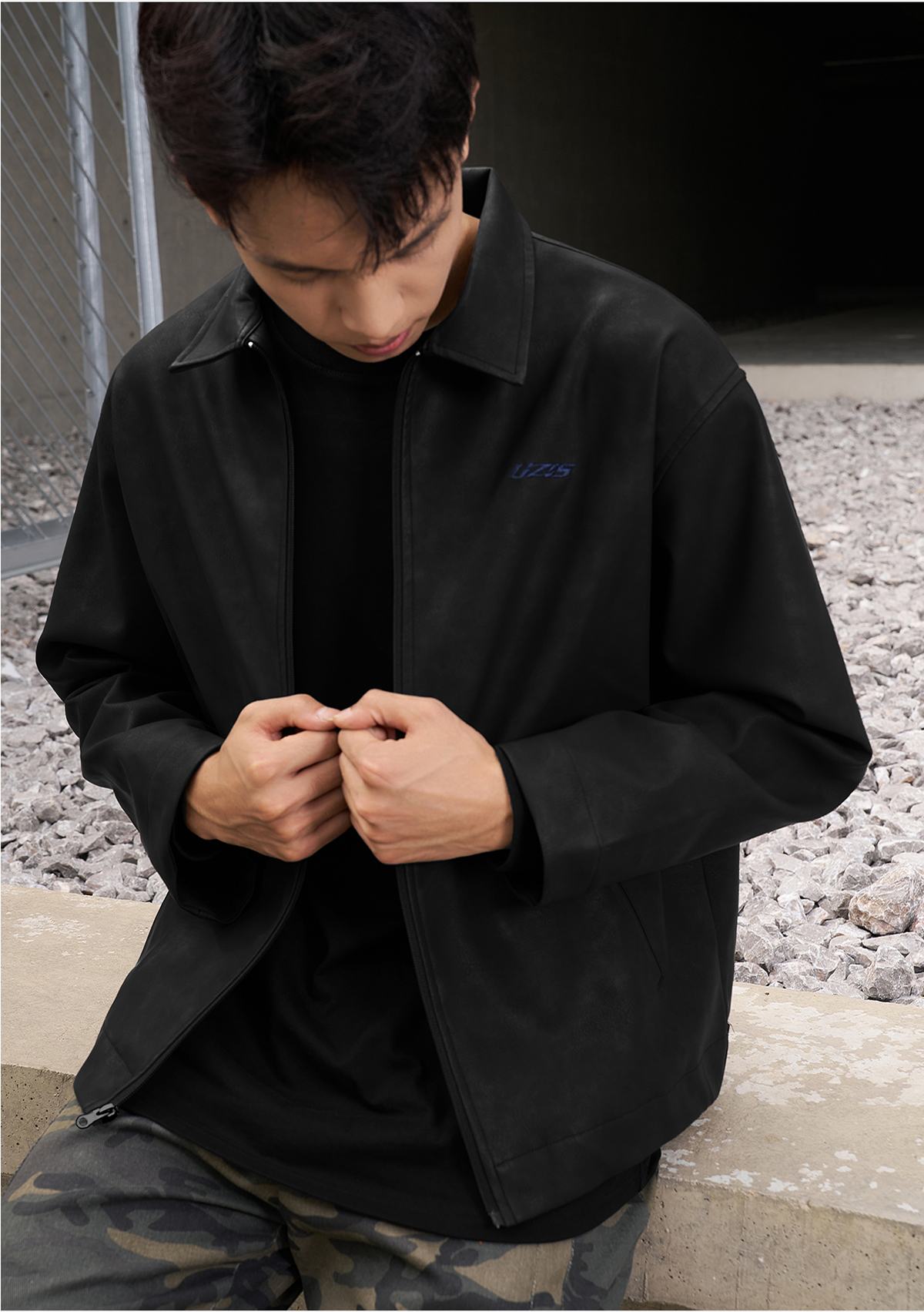 有志者UZIS运动外套男款美式篮球休闲宽松秋冬款仿麂皮外套 骑士