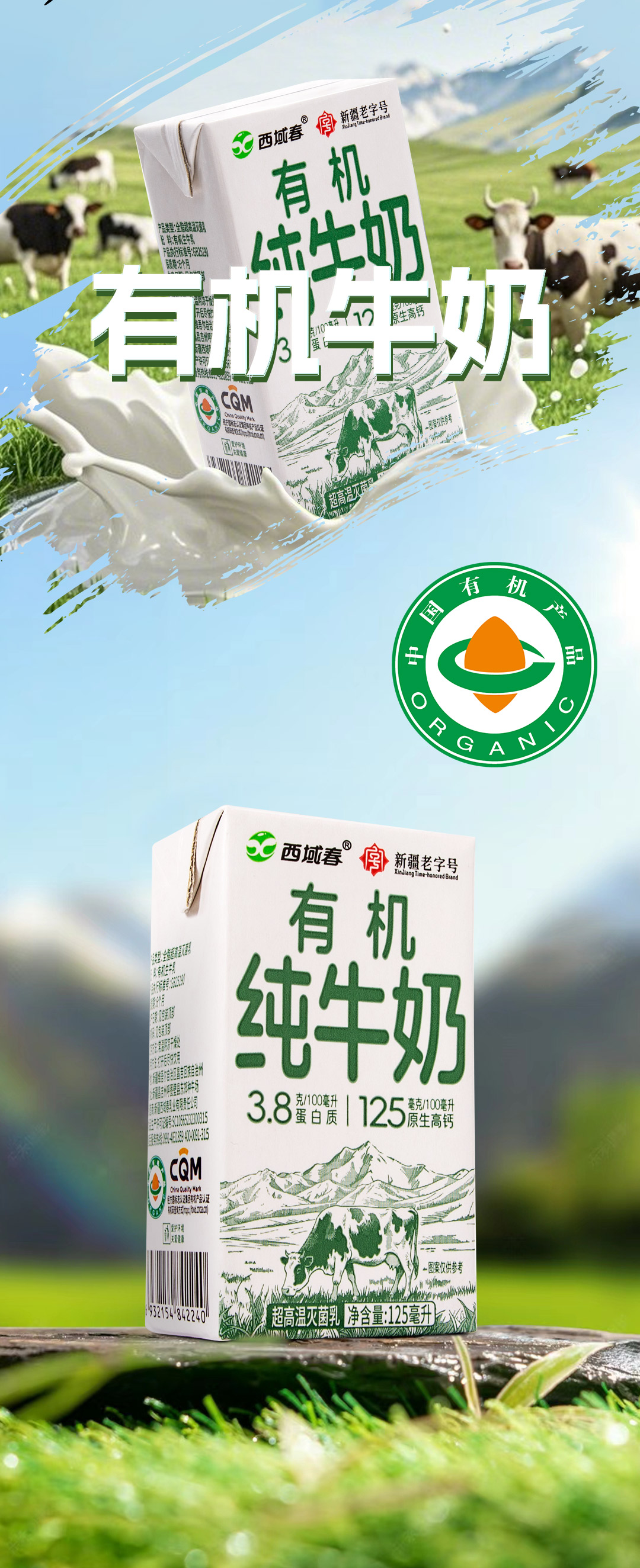 西域春125ml有机纯牛奶(16盒)