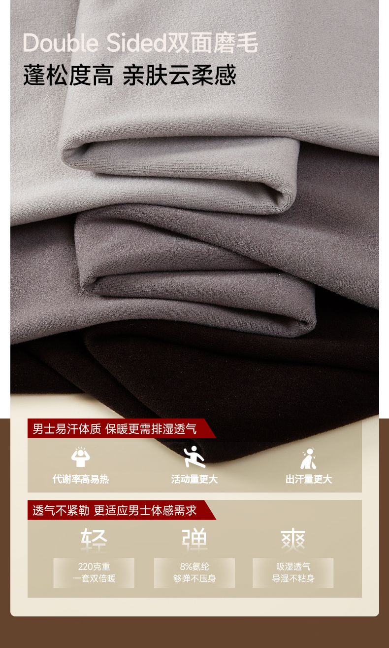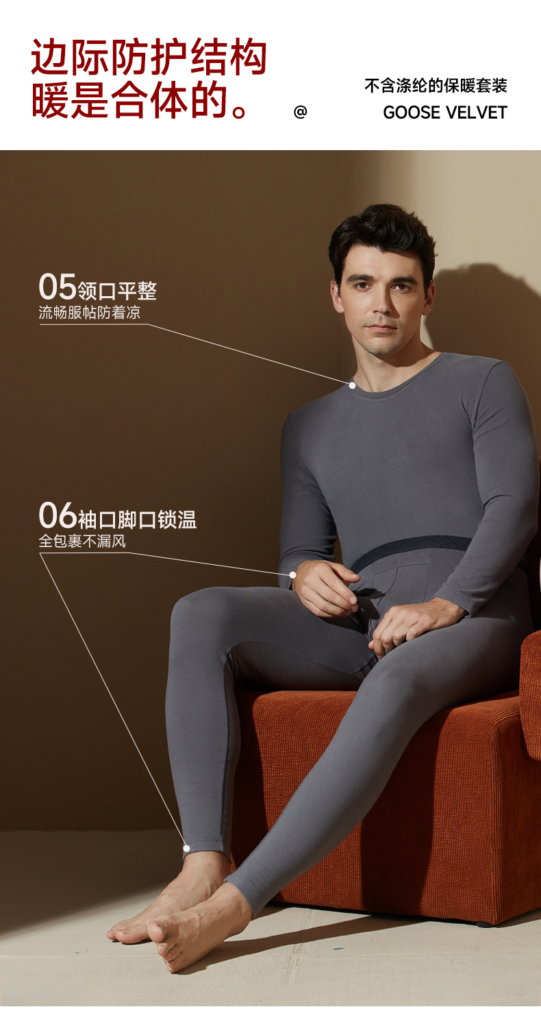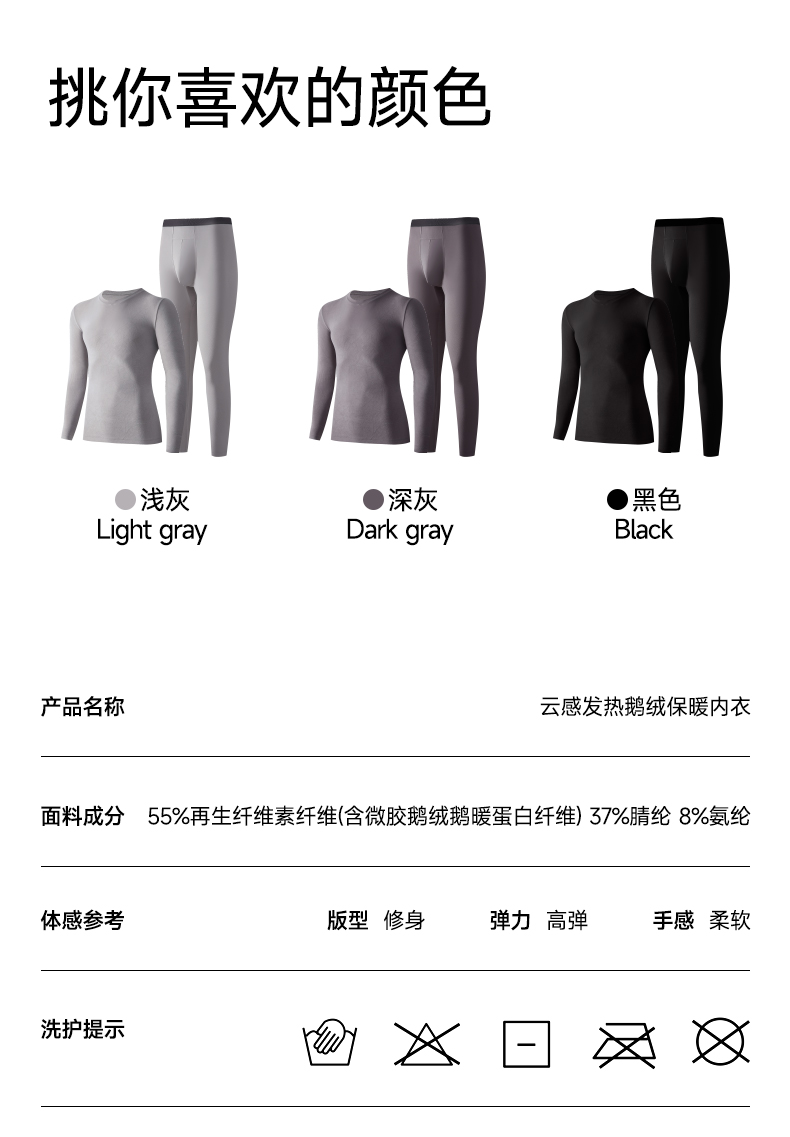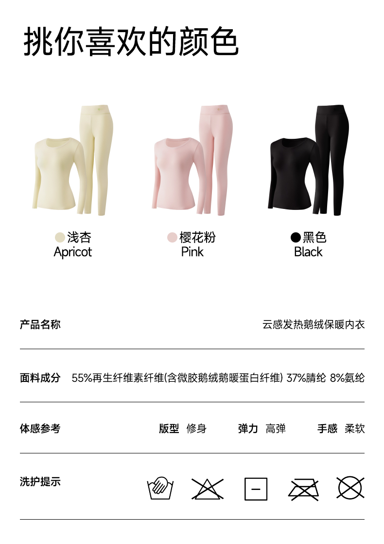 【专卖店同款】艺达世家 云感发热鹅绒保暖衣套装 鹅暖绒蛋白纤维 双面磨毛;轻塑修身 全身蓄暖 均匀保暖; 女款双层高腰头暖宫护腹/男款免穿内裤设计