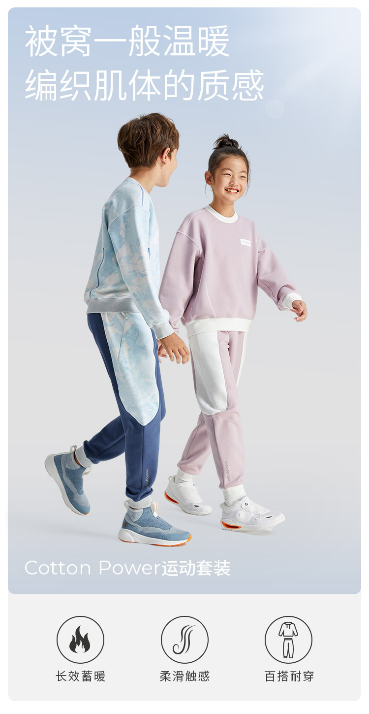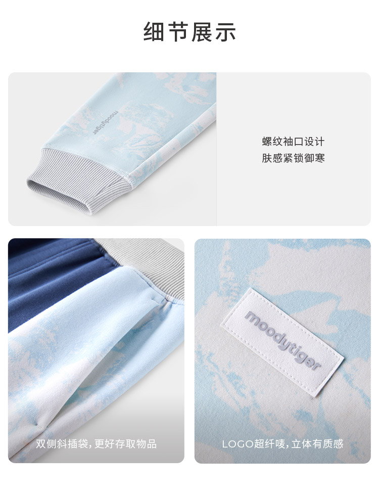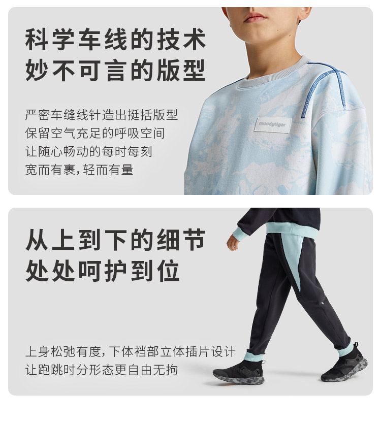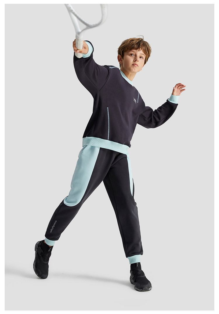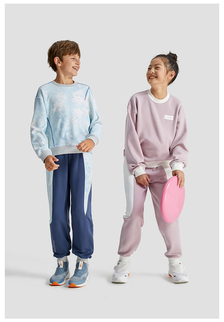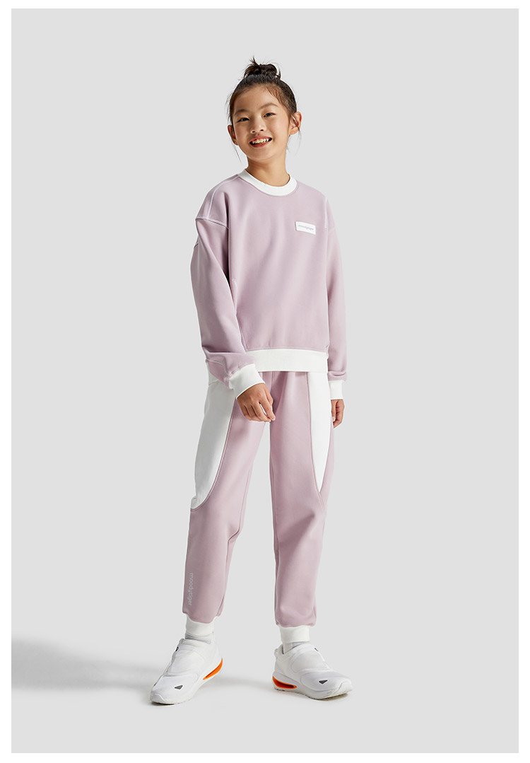 【专属】moodytiger儿童运动套装23年男女童撞色抓绒保暖卫衣卫裤 M34110304+M34111301