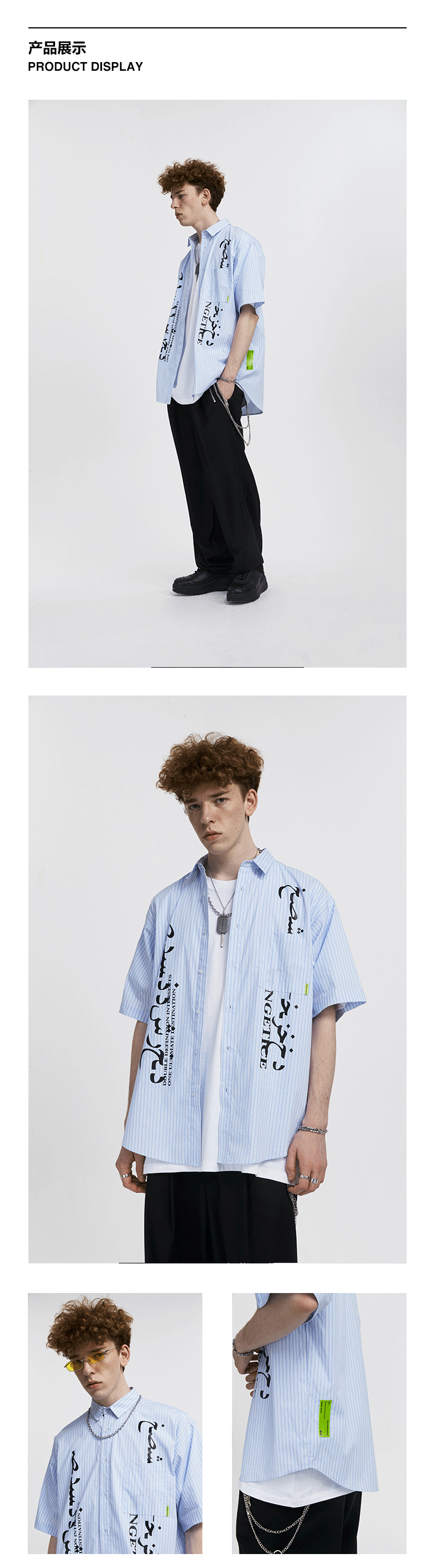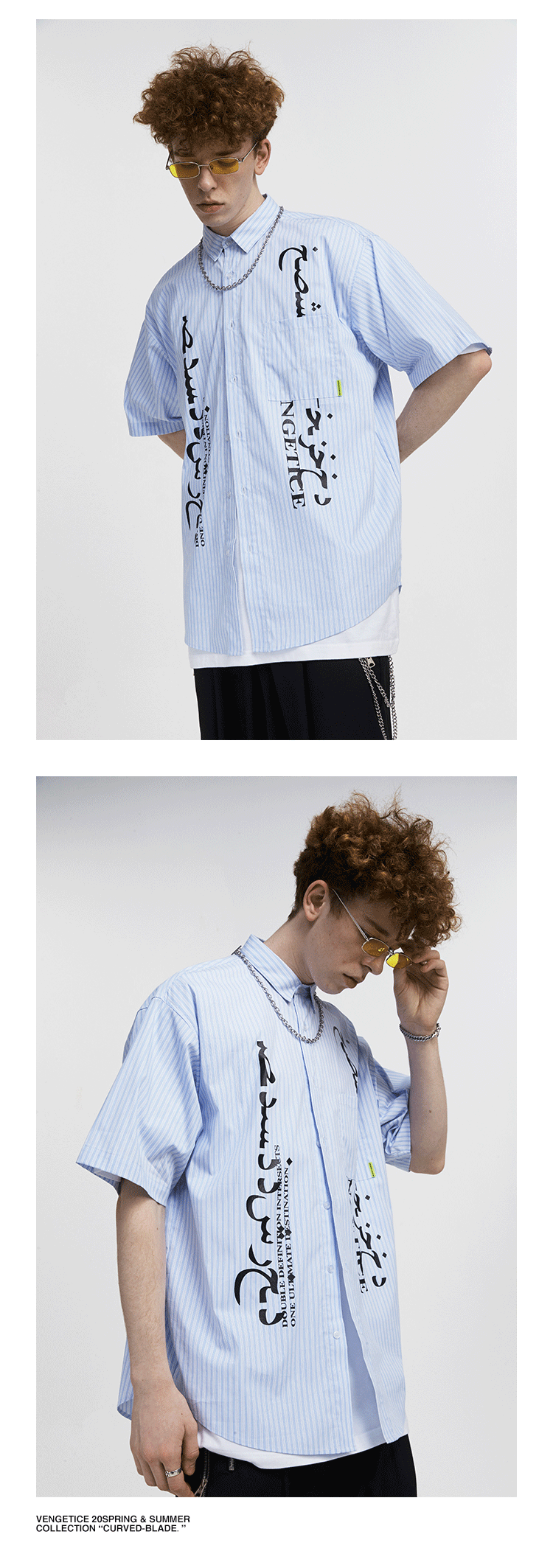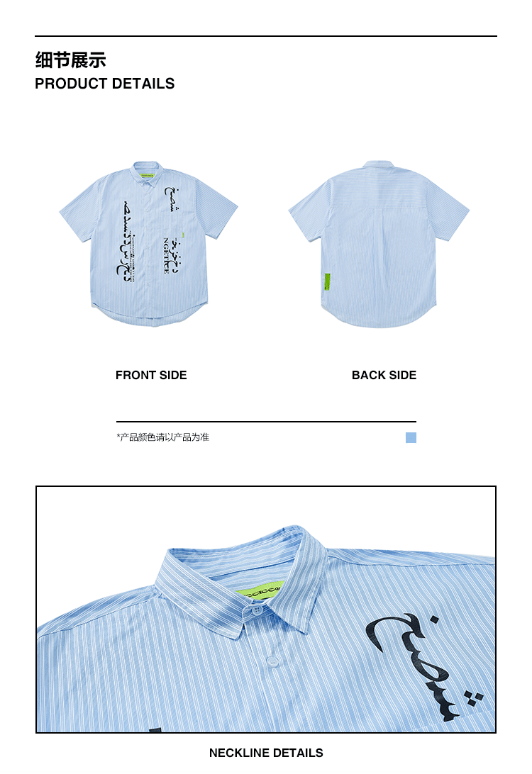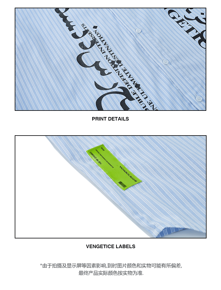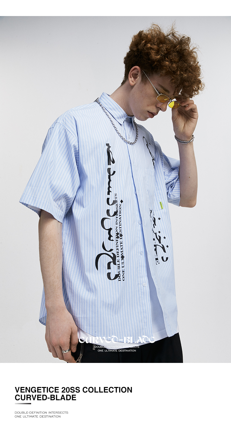 FPA(VENGETICE) 印花条纹短袖衬衫 宽松休闲国潮牌衬衣男嘻哈街头