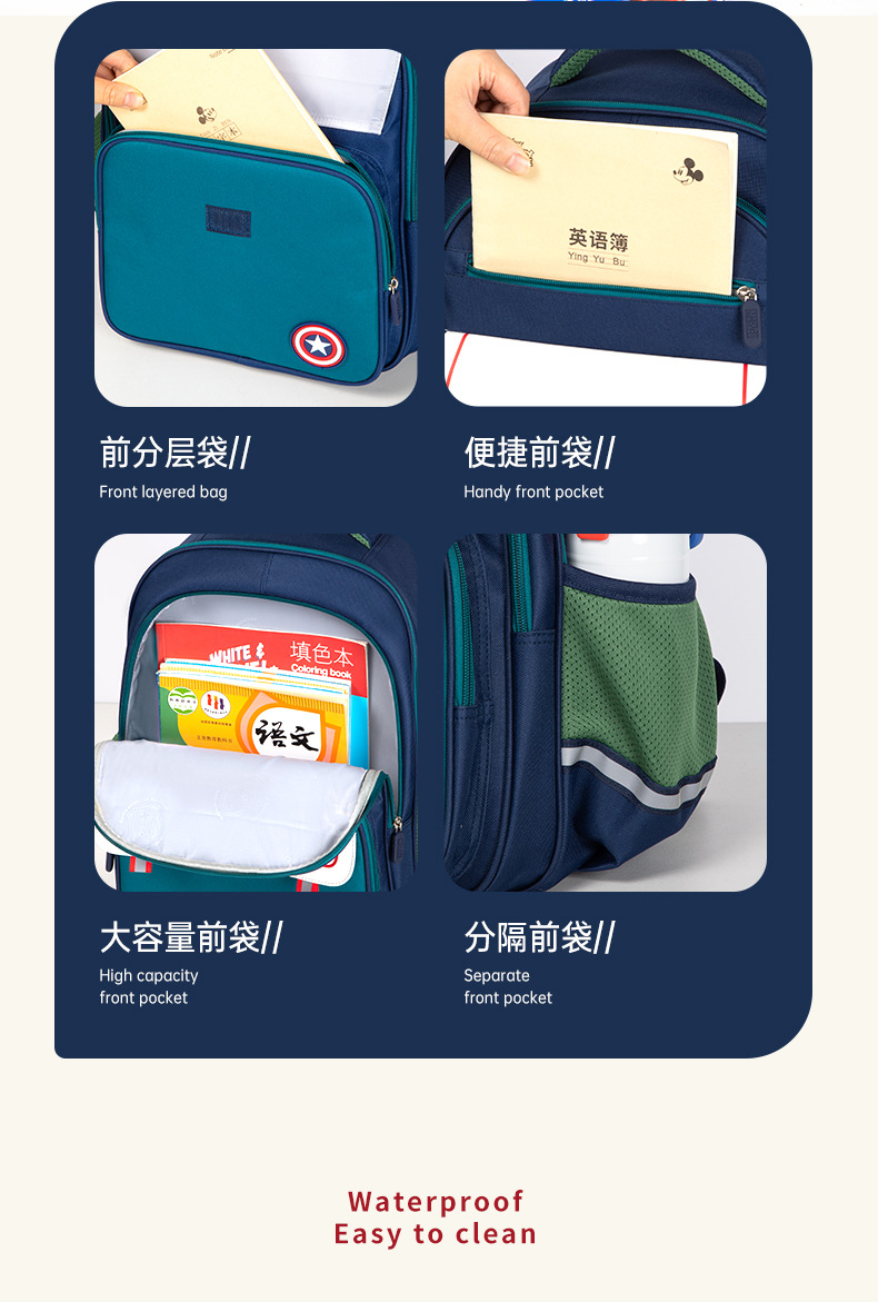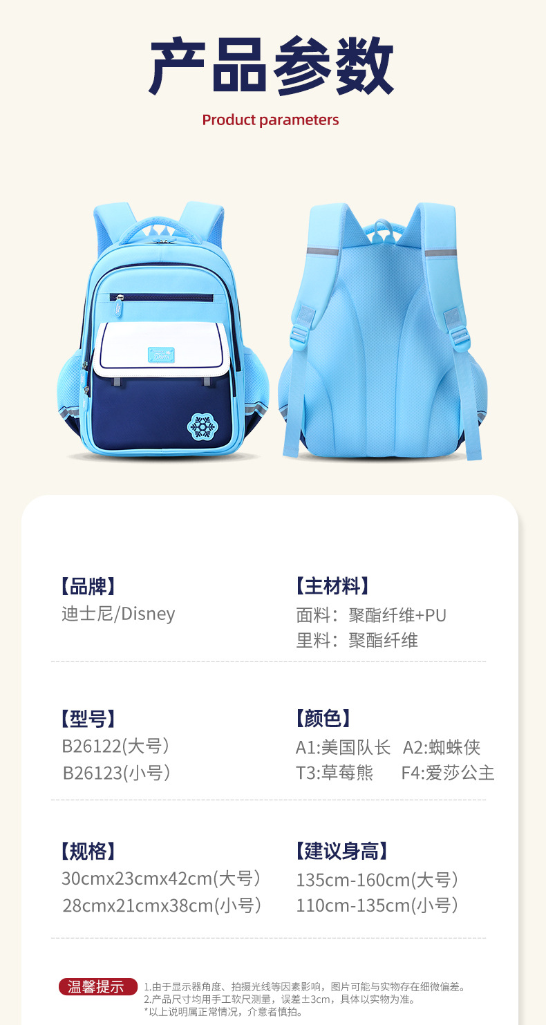 迪士尼书包 儿童1-6年级小学生书包 简约大容量 护脊减负 学校背包双肩包
