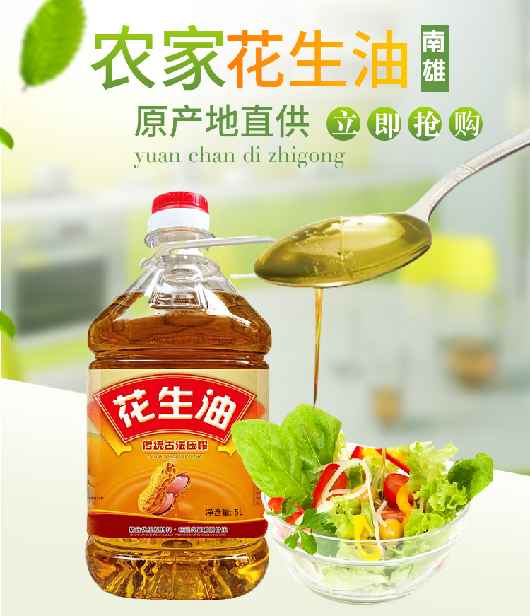 【韶关帮扶】千年雄州 农家纯正花生油 5L