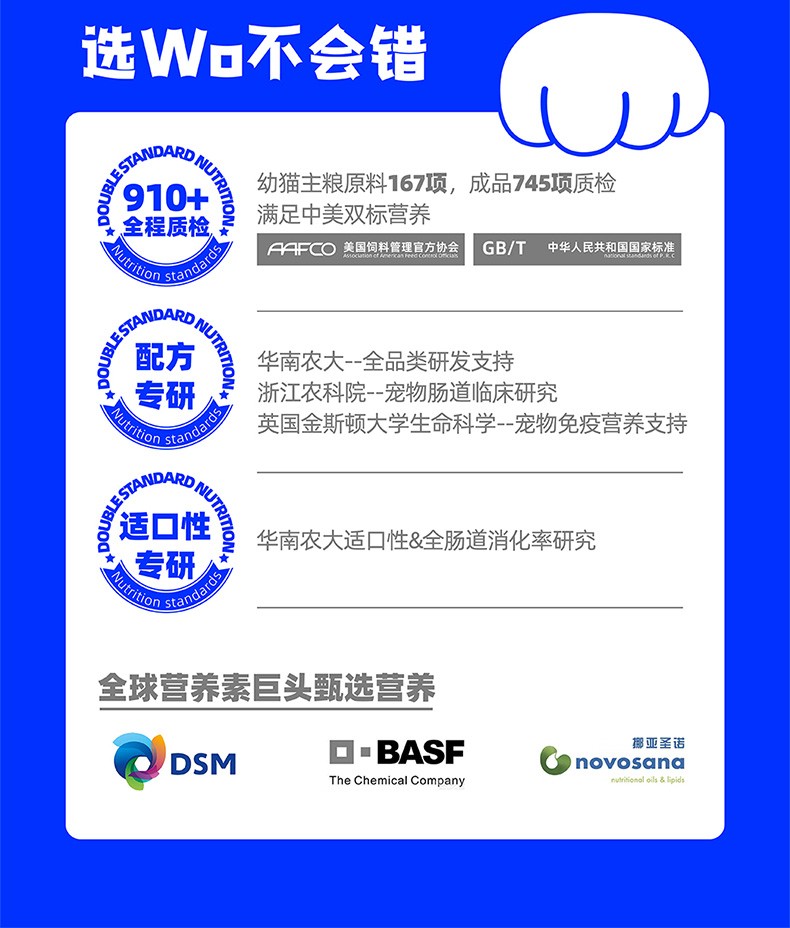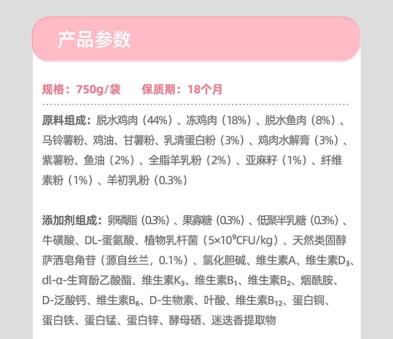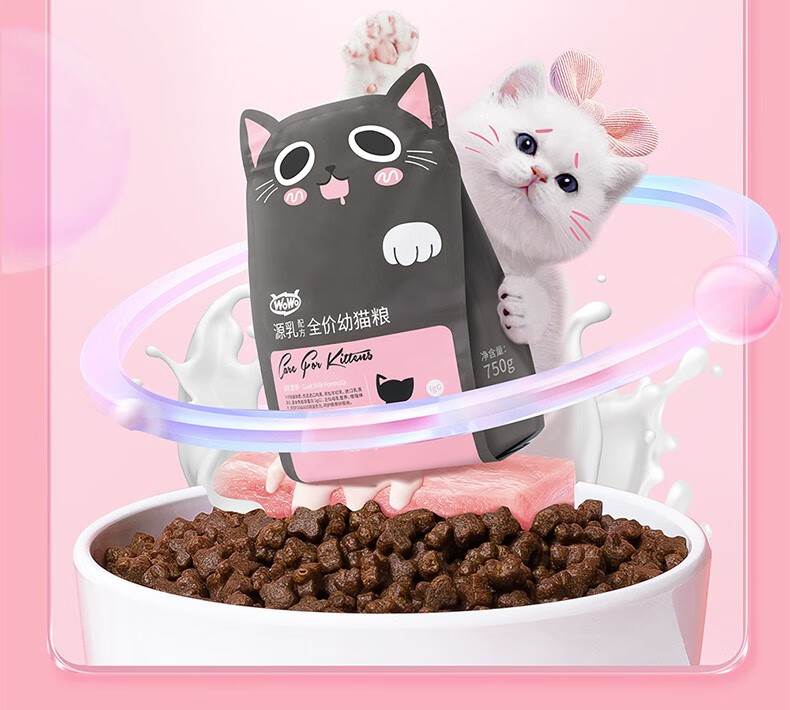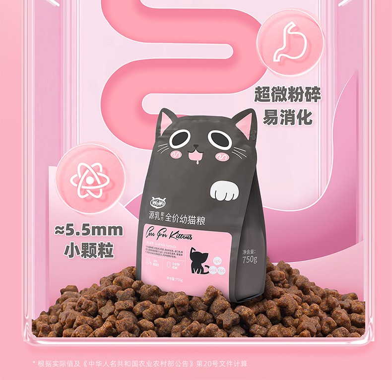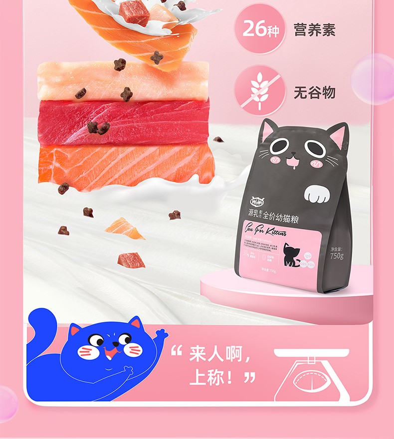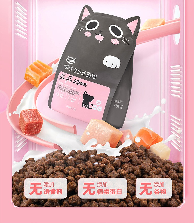 WoWo喔喔猫粮粉耳朵猫奶糕幼猫专用高蛋白胃肠呵护无谷猫粮750g