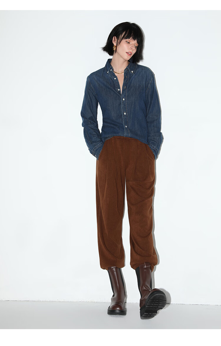 【专属秒杀】COCOBELLA细腻软糯加厚针织糯米裤女宽松垂坠多色休闲裤PA552