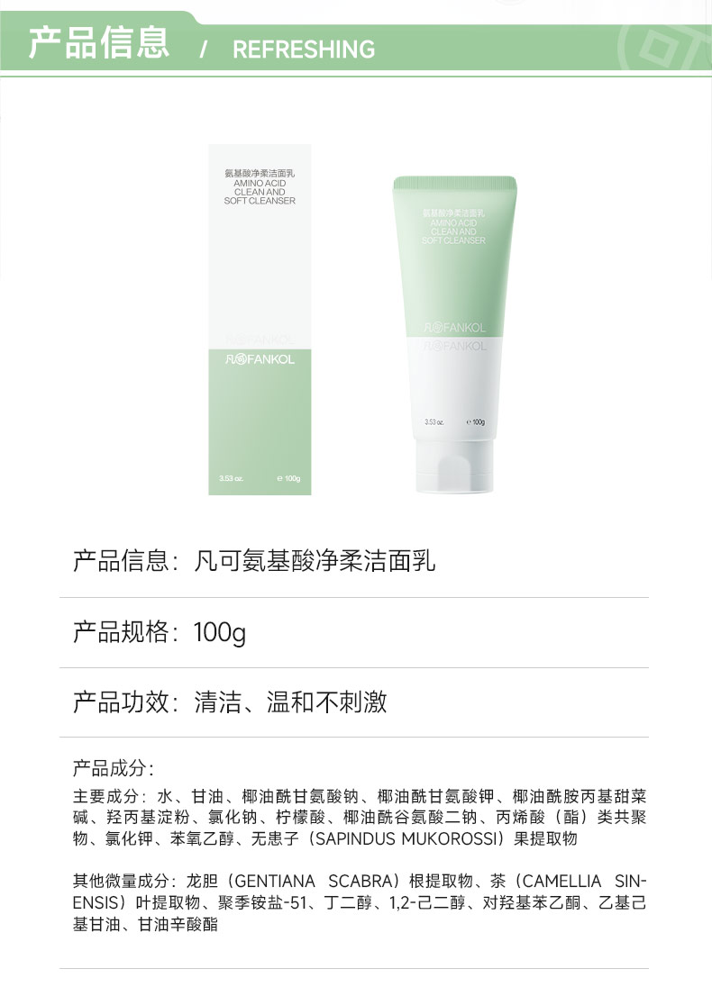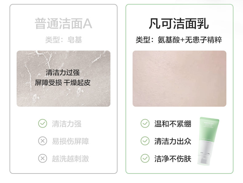 凡可氨基酸净柔洁面乳洗面奶深层清洁毛孔温和不刺激男女泡沫绵密