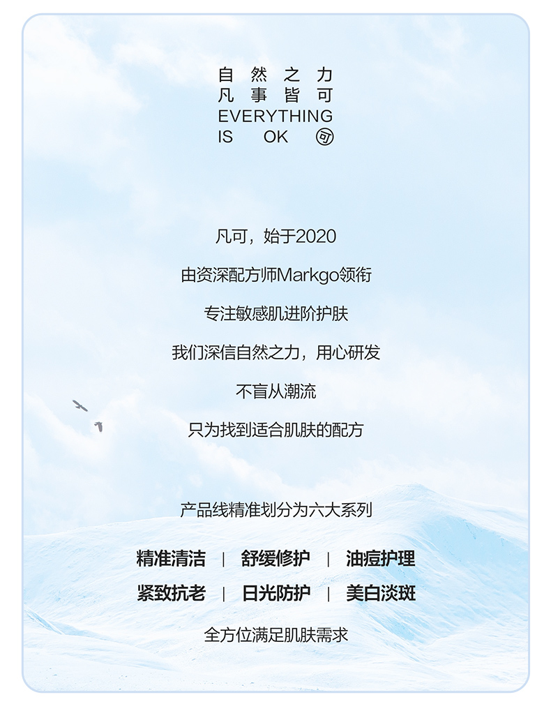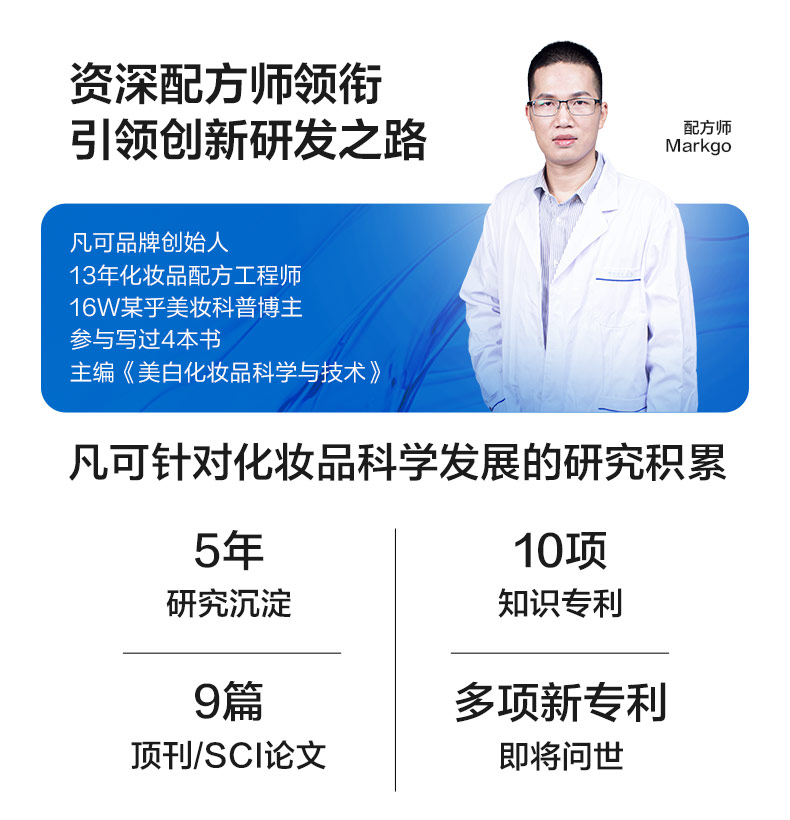 - 凡可是由从事化妆品研发15年的专业配方师-Markgo创立的新锐护肤品牌,以敏肌为核心提供敏肌进阶多方位功效护肤方案。