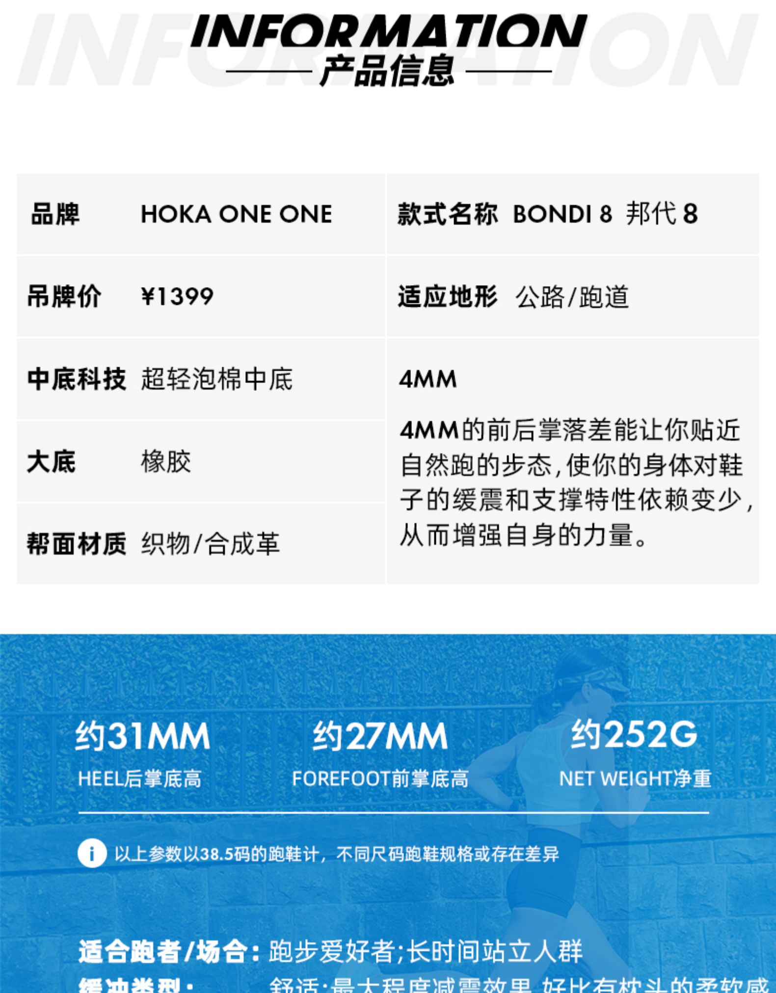 HOKA ONE ONE Bondi8 邦代8 缓震路跑鞋