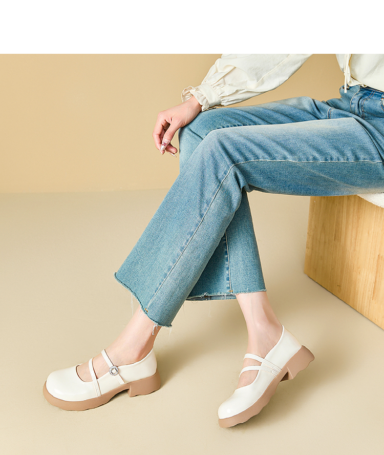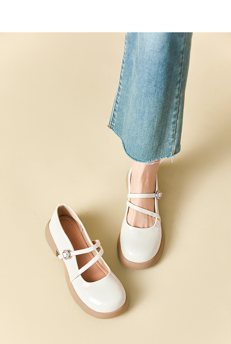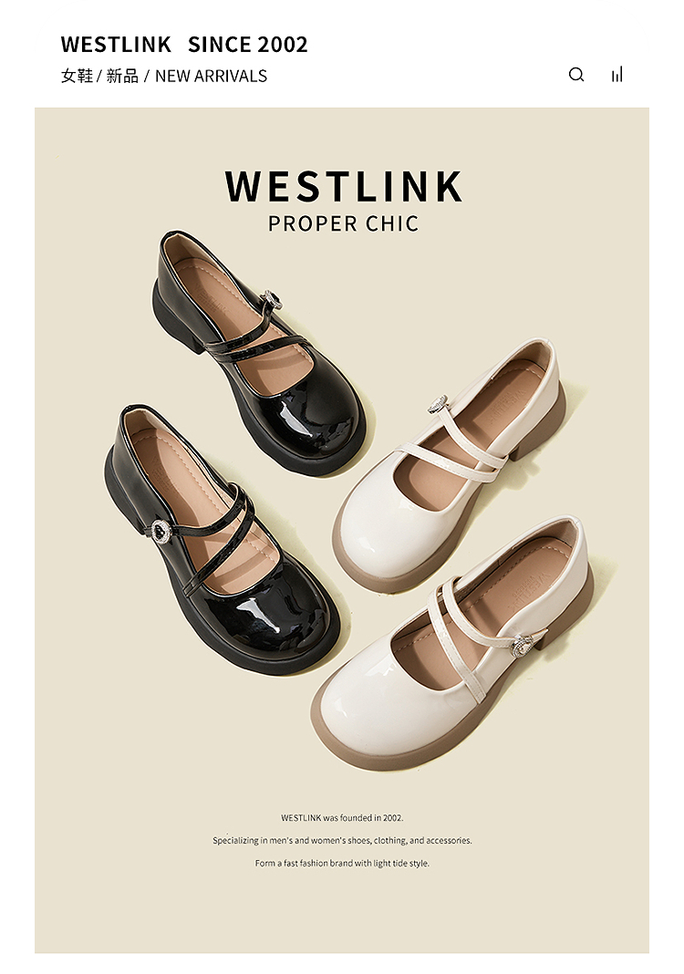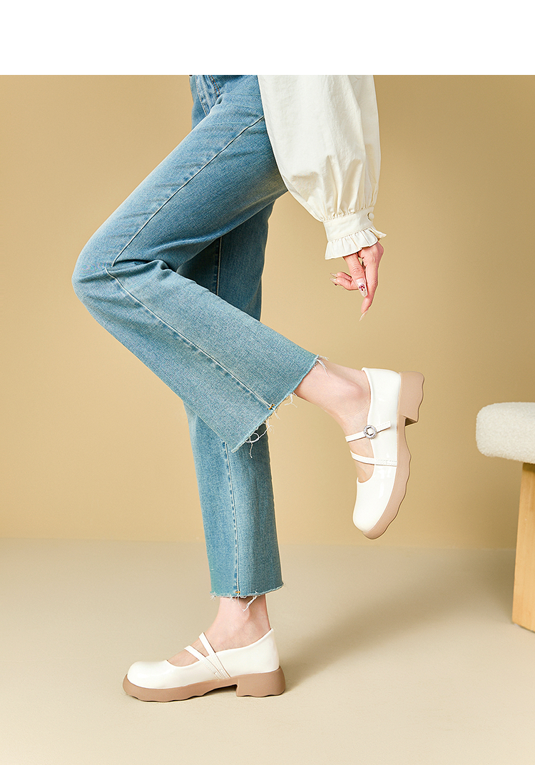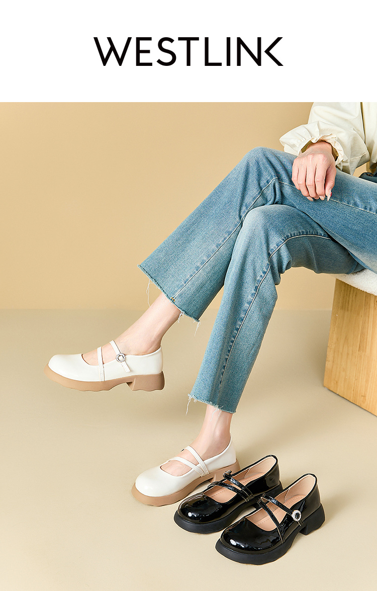 西遇玛丽珍小皮鞋女新款春夏法式亮面厚底低跟软底不累脚单鞋V0556526