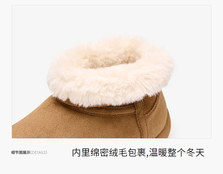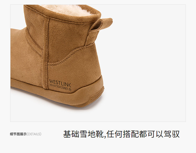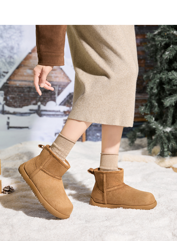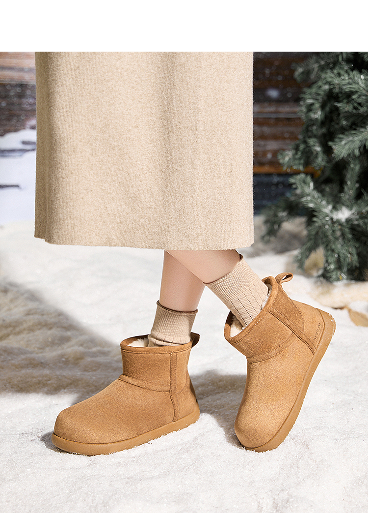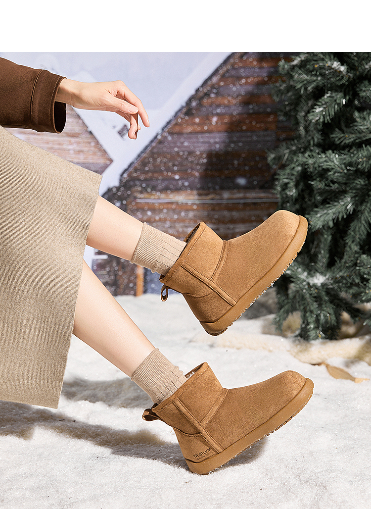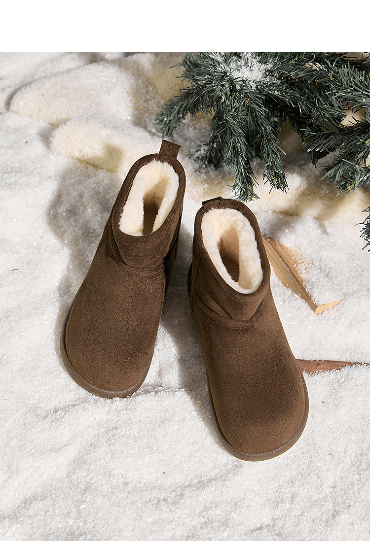 西遇勃肯雪地靴女新款冬季复古厚底外穿保暖加绒棉鞋圆头短靴V2457332