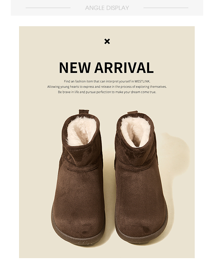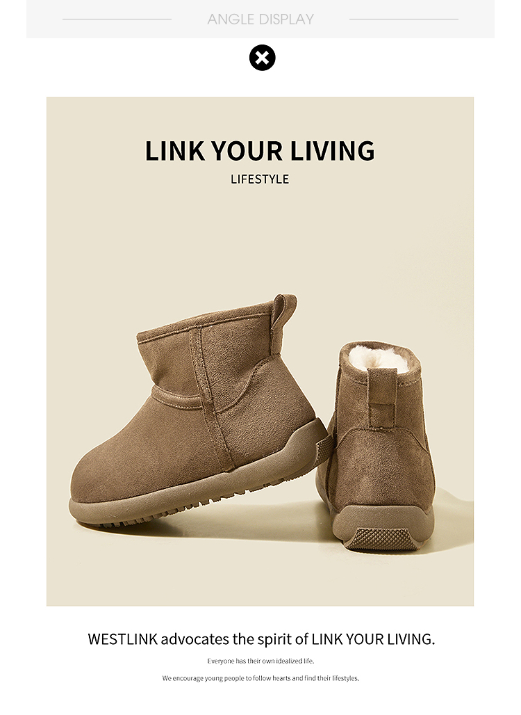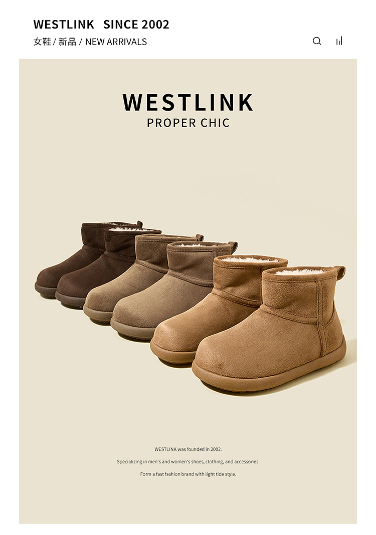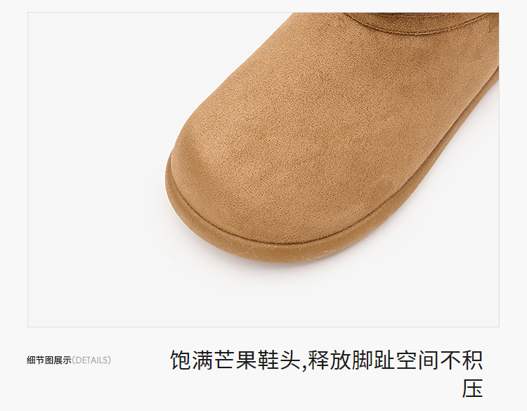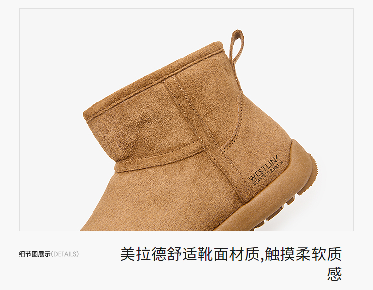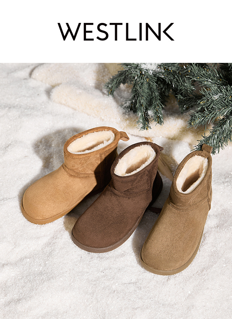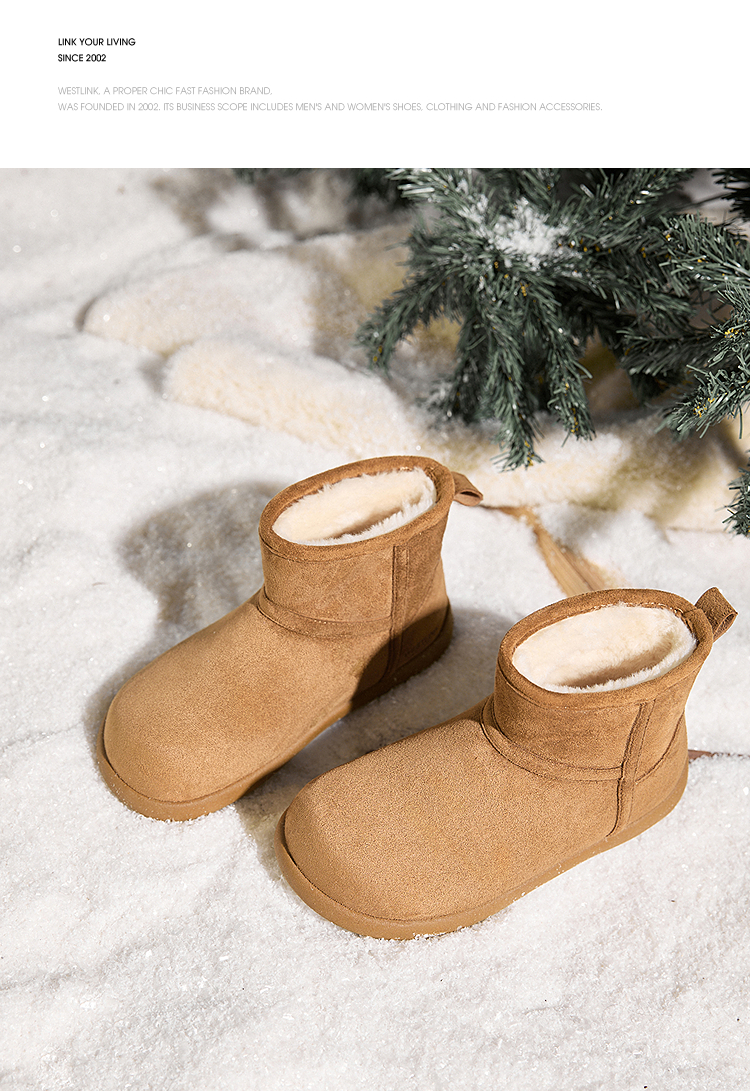 西遇勃肯雪地靴女新款冬季复古厚底外穿保暖加绒棉鞋圆头短靴V2457332