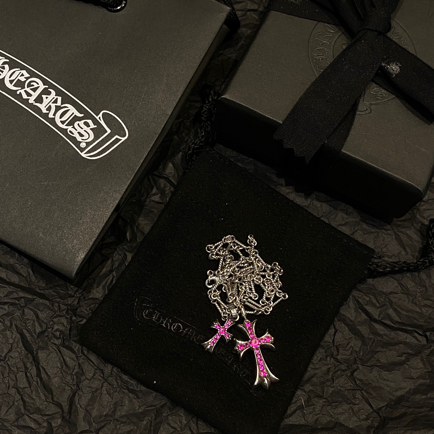 𝐂𝐡𝐫𝐨𝐦𝐞 𝐡𝐞𝐚𝐫𝐭𝐬 克罗心红钻大小十字架项链