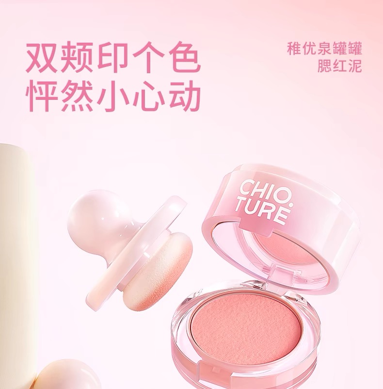 稚优泉·CHIOTURE罐罐腮红 泥膏腮红自带粉扑镜子 面部膨胀收缩色