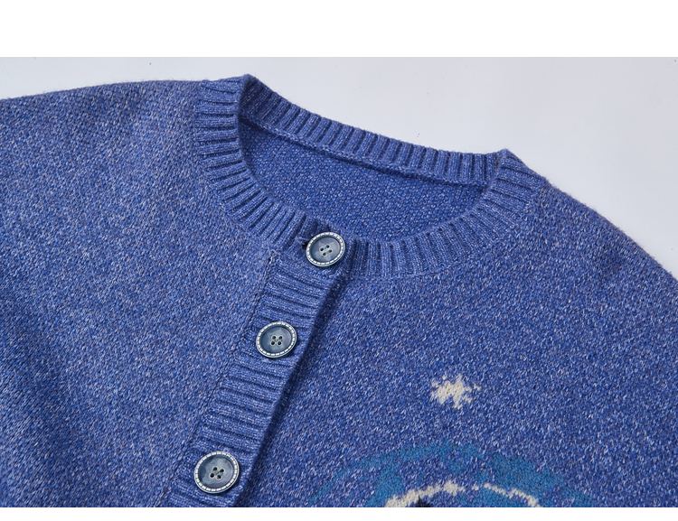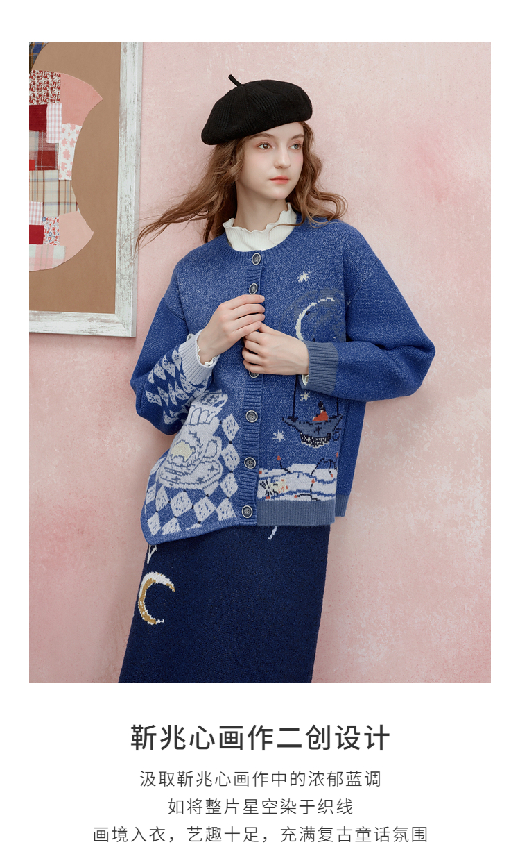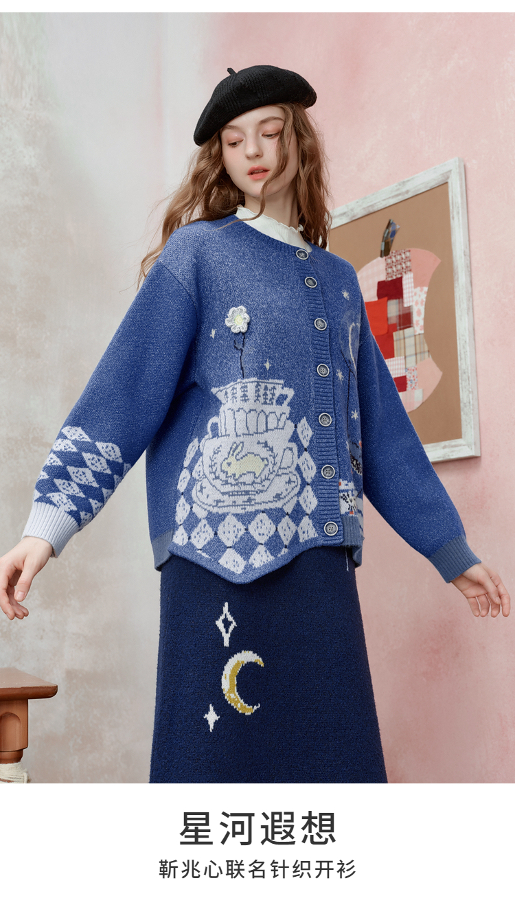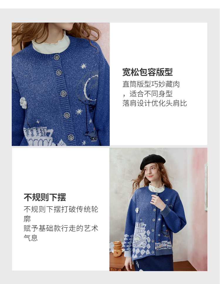 两三事 星河遐想 2025冬季新款立体钩花不对称下摆花色毛衣开衫女