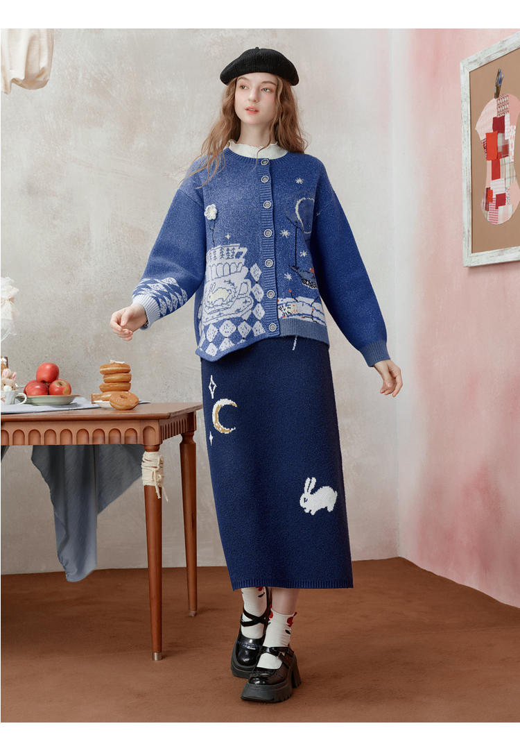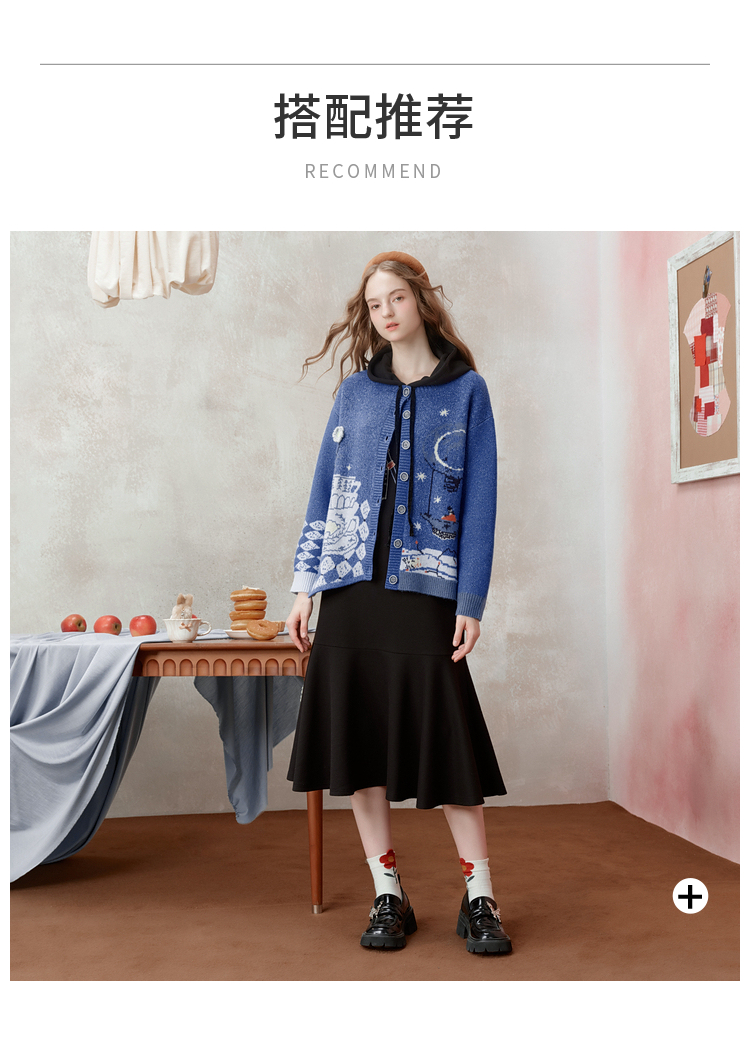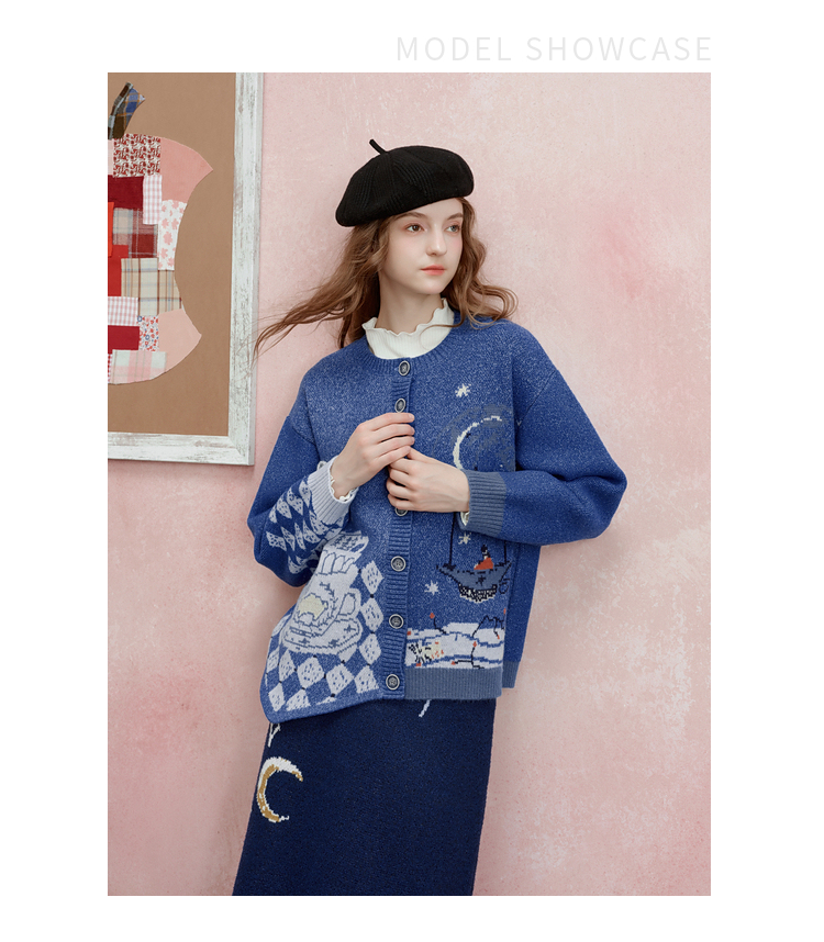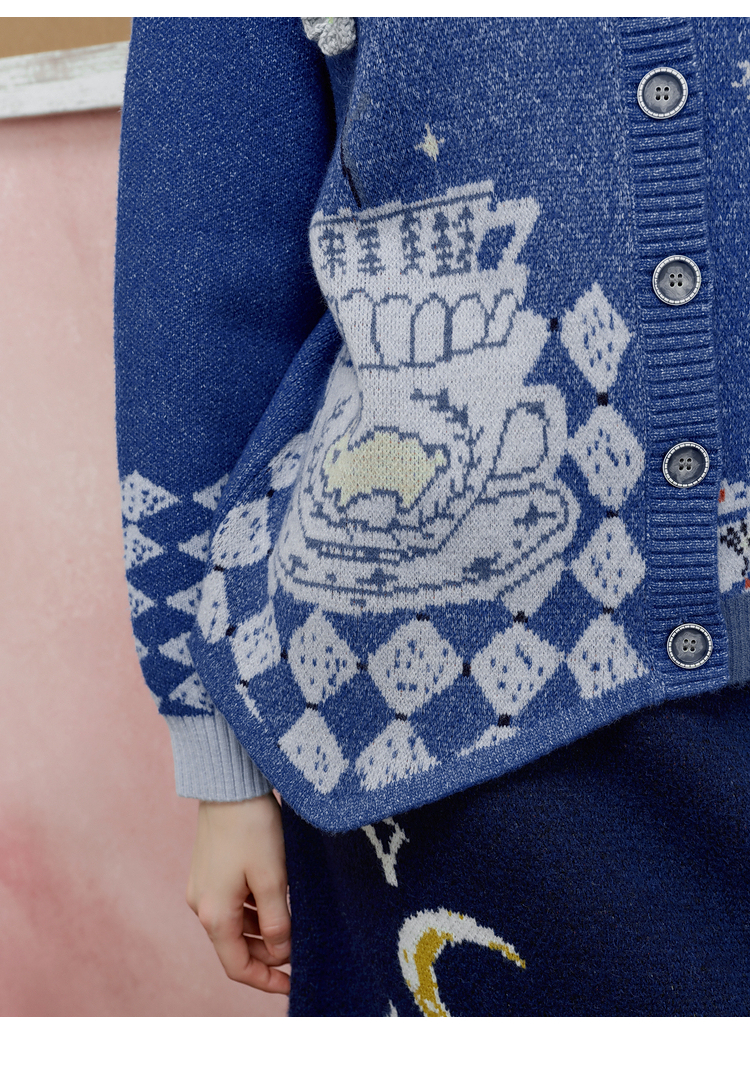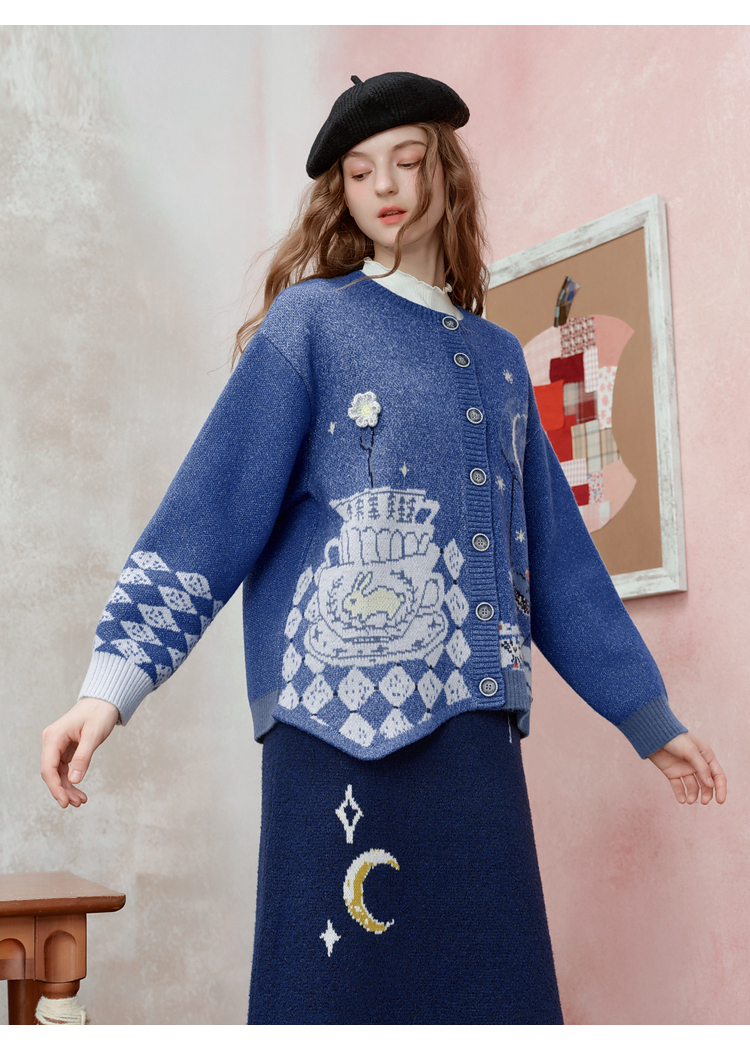 两三事 星河遐想 2025冬季新款立体钩花不对称下摆花色毛衣开衫女