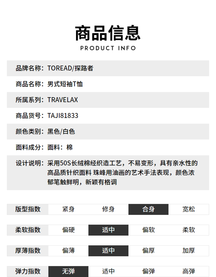 探路者男式短袖T恤TAJI81833