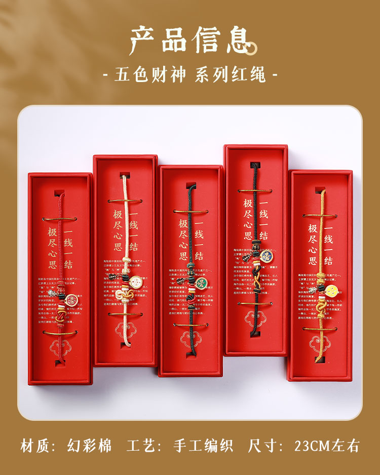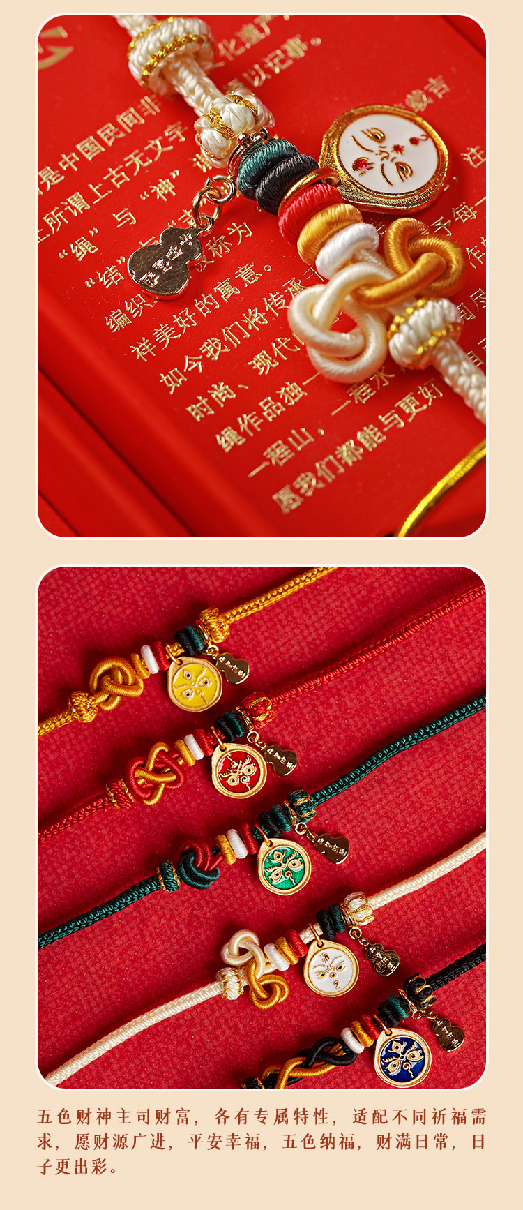 牛首山文创五色财神系列红绳本命年礼物编织手绳情侣闺蜜节日礼物