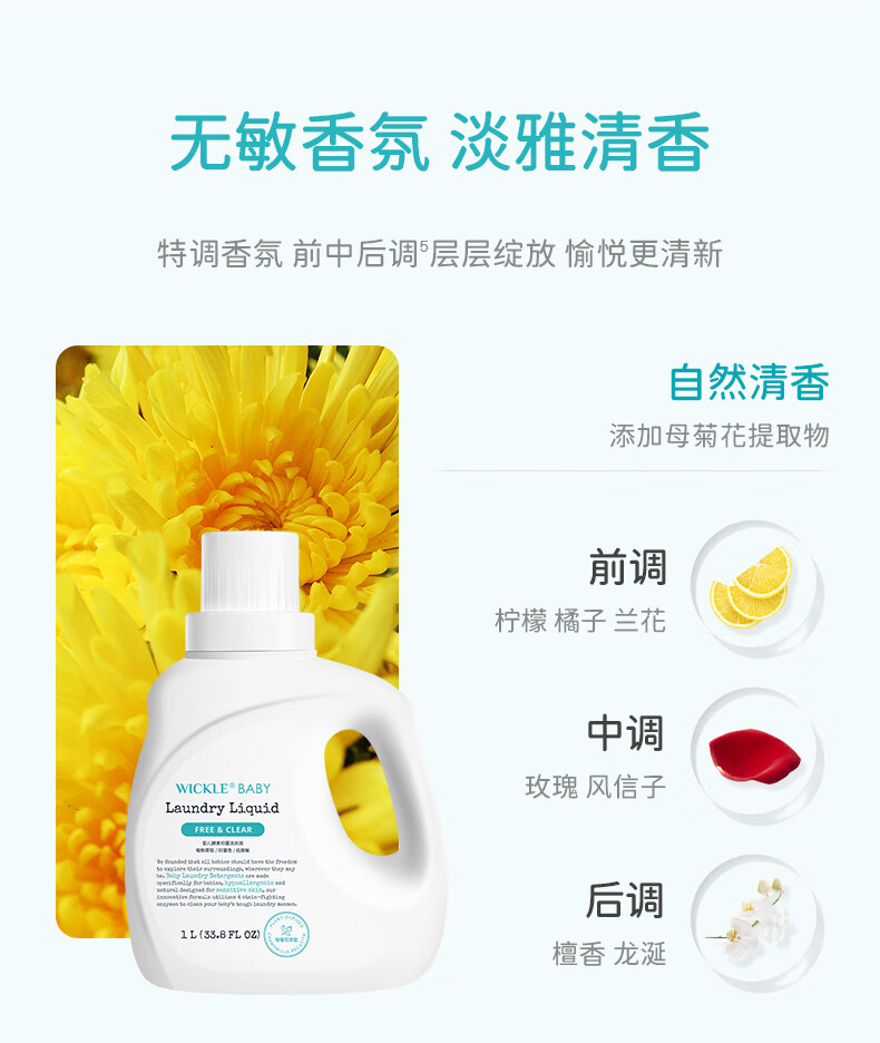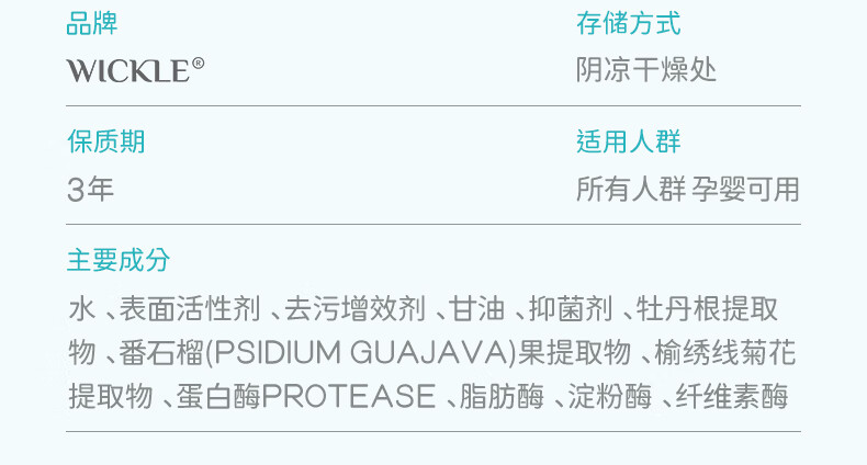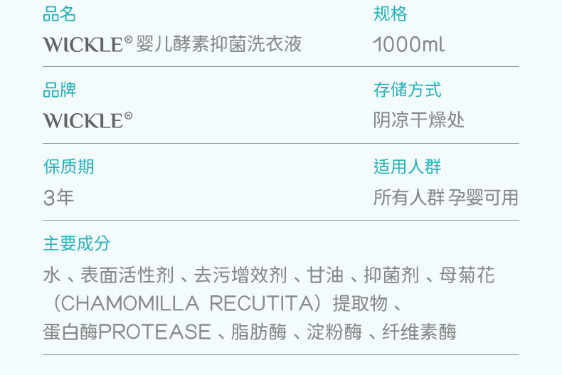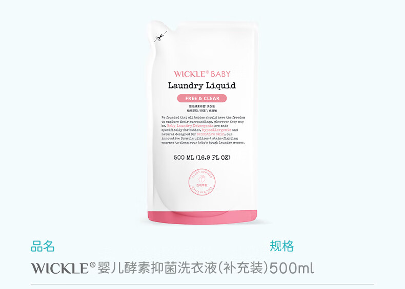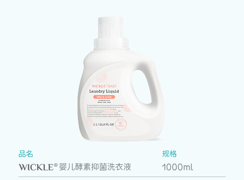 wickle婴儿洗衣液抑菌婴幼儿新生宝宝专用儿童抑菌酵素洗衣服液