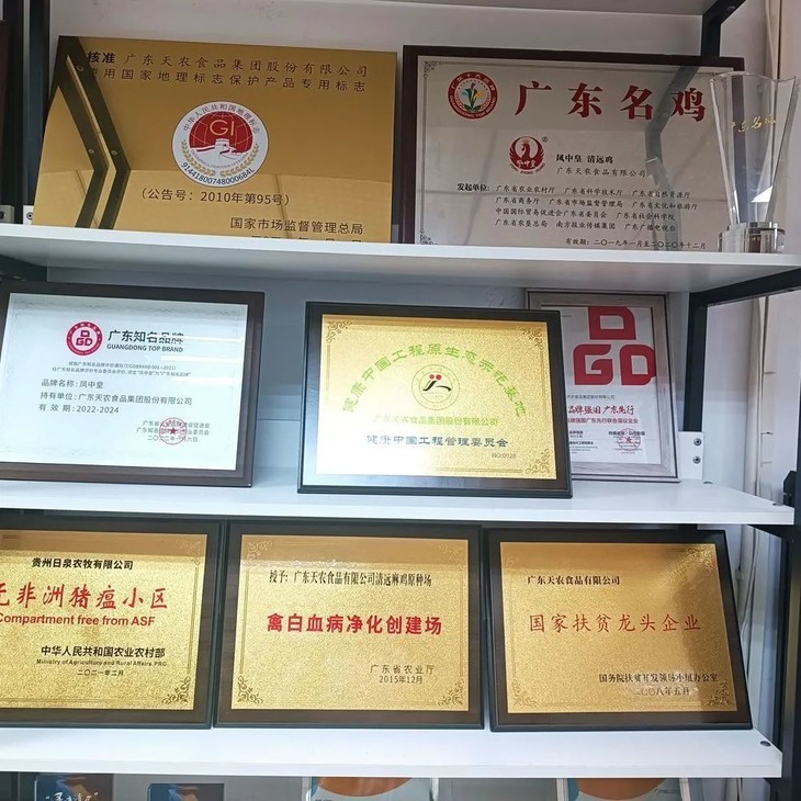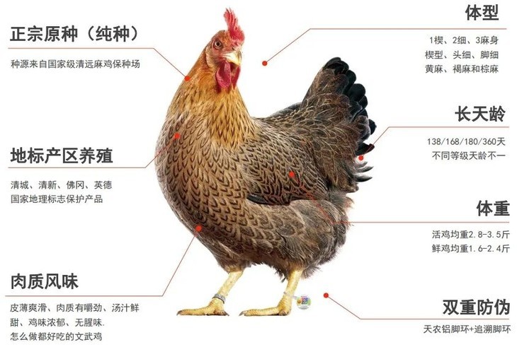 上面已经提到「天农」是清远鸡保种单位,他们家的清远鸡是真正正宗的,每一只都拥有“一楔、二细、三麻身”的正宗清远麻鸡