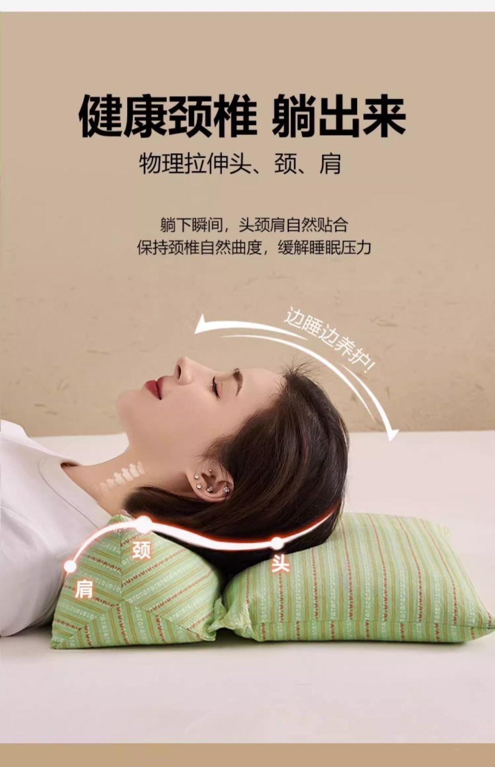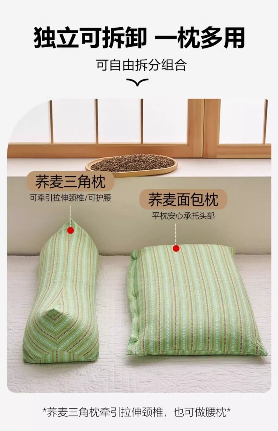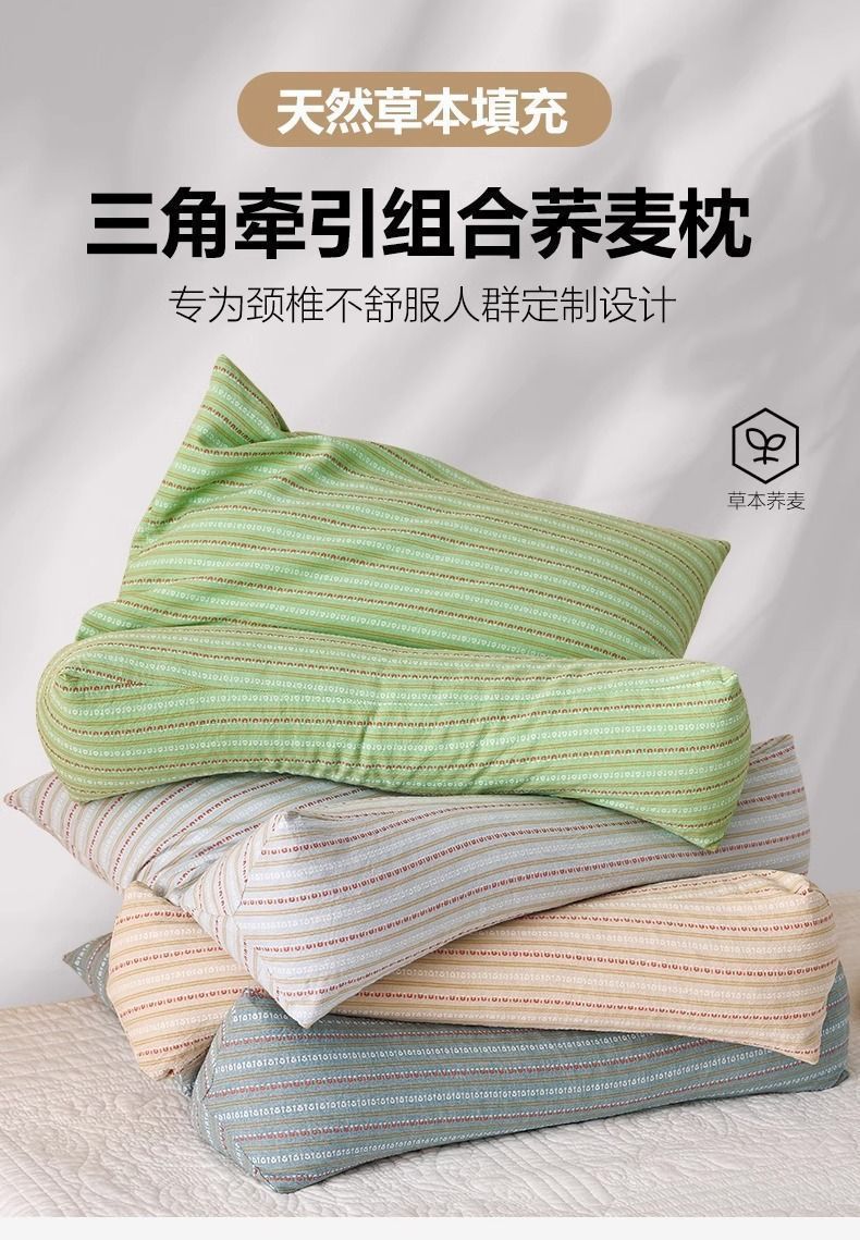 颈椎枕荞麦三角连体枕头护颈椎助睡眠反弓牵引枕芯成人护颈专用
