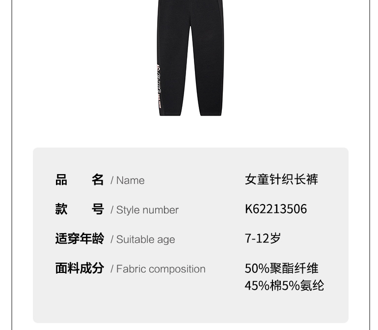 小361女童针织长裤 儿童修身运动裤小学2022春季新款k62213506