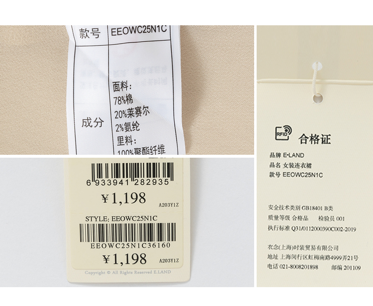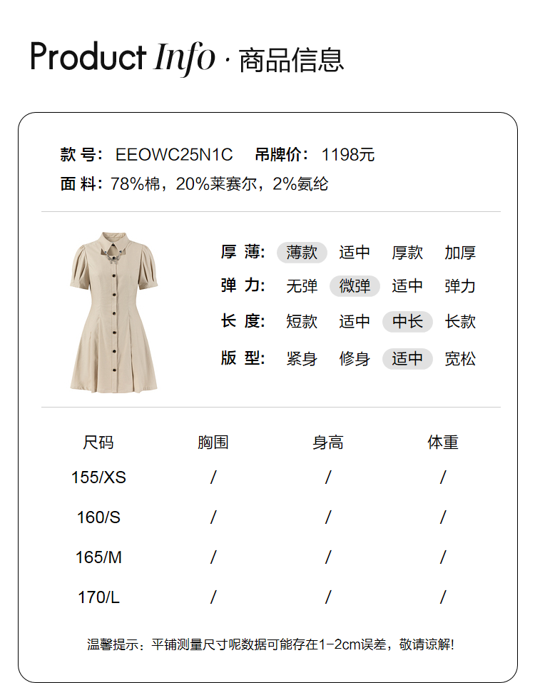 ELAND依恋2022年夏款百搭梭织显瘦衬衣连衣裙EEOWC25N1C