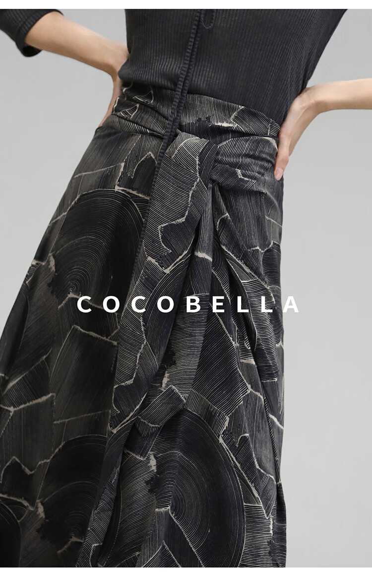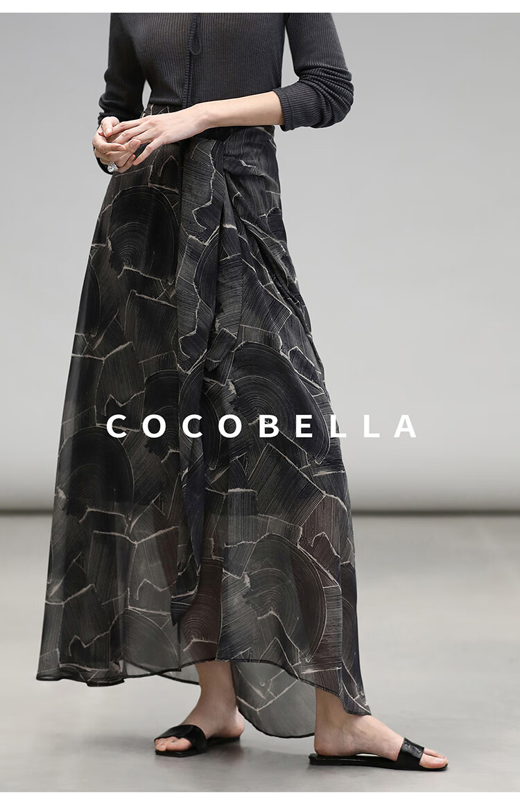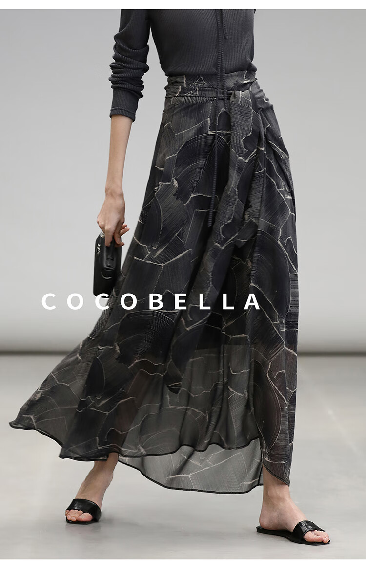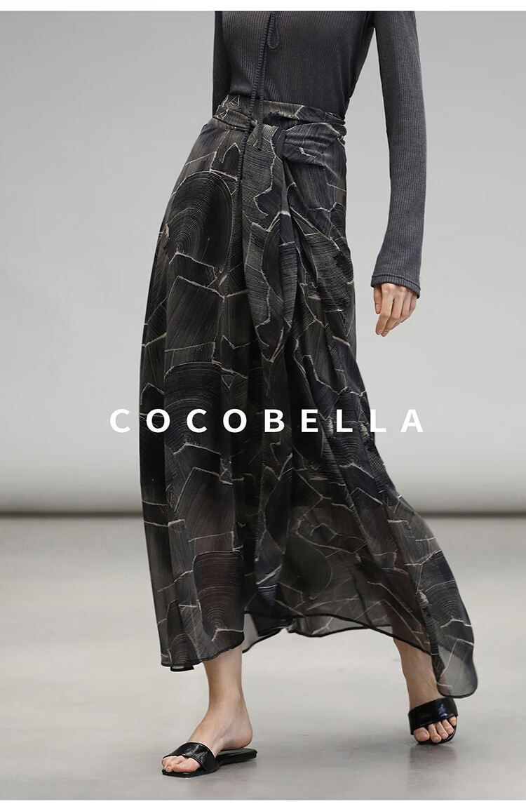 COCOBELLA度假风大理石纹印花飘带半身裙春夏飘逸长裙HS3109