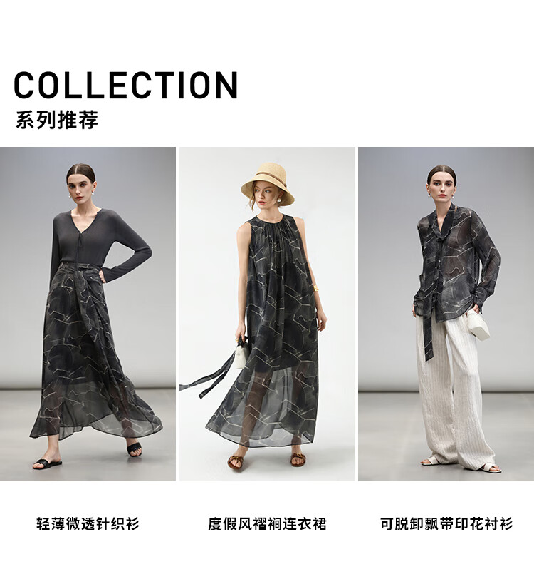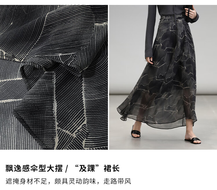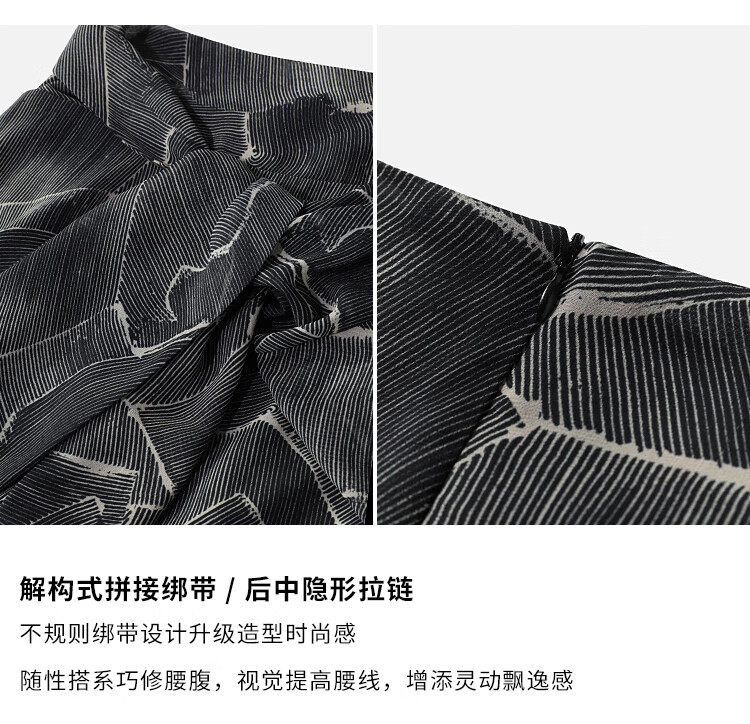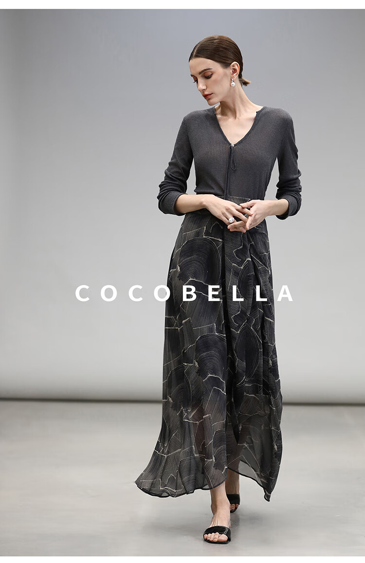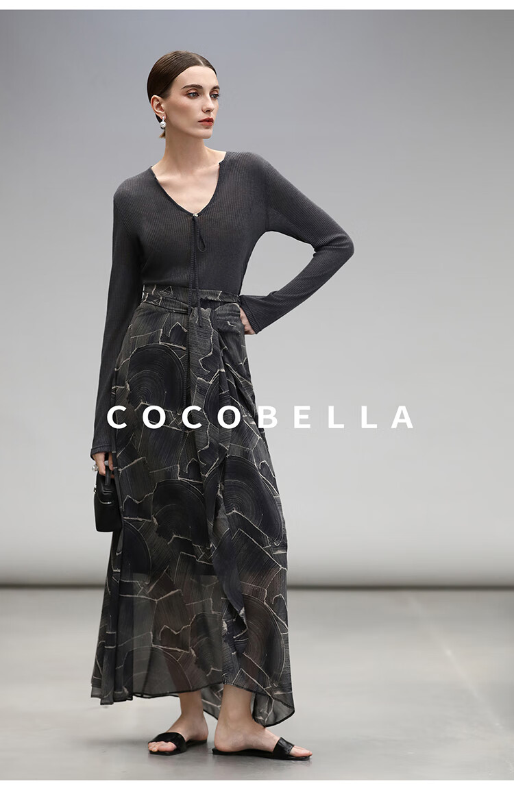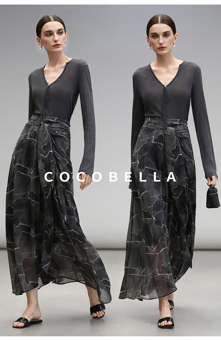 COCOBELLA度假风大理石纹印花飘带半身裙春夏飘逸长裙HS3109
