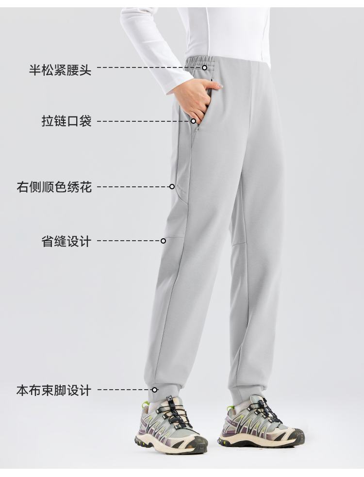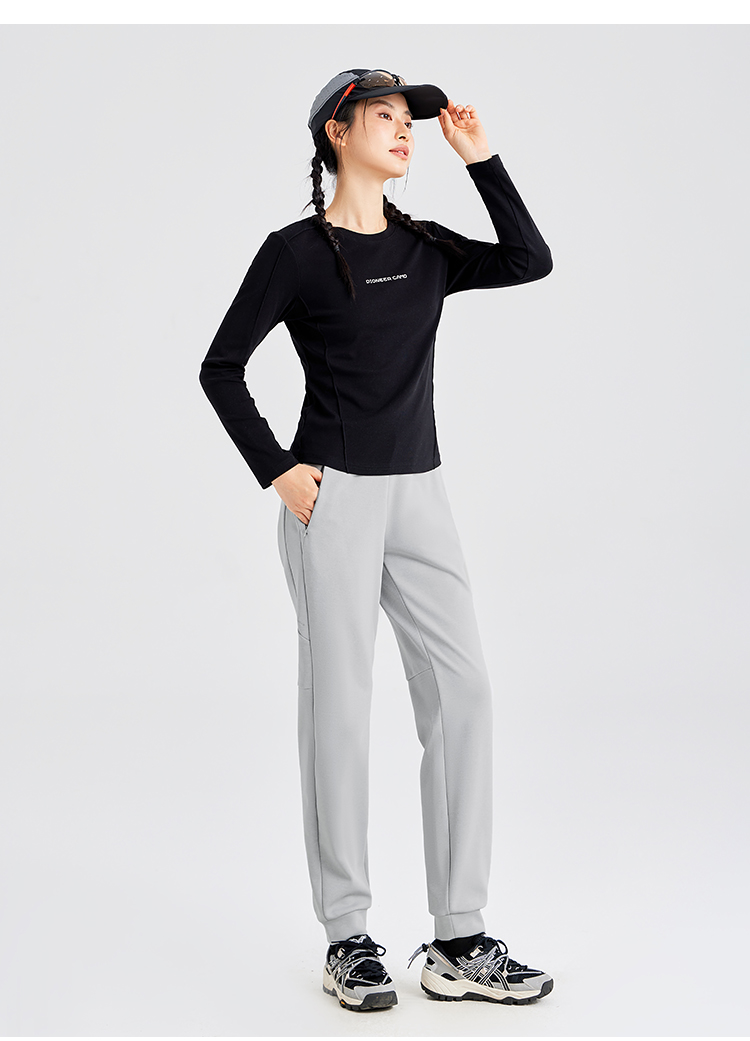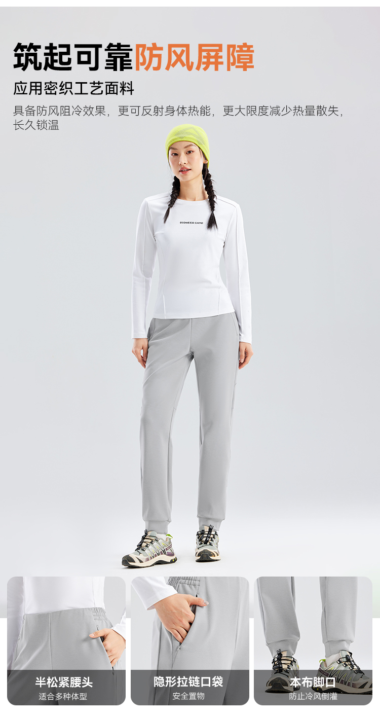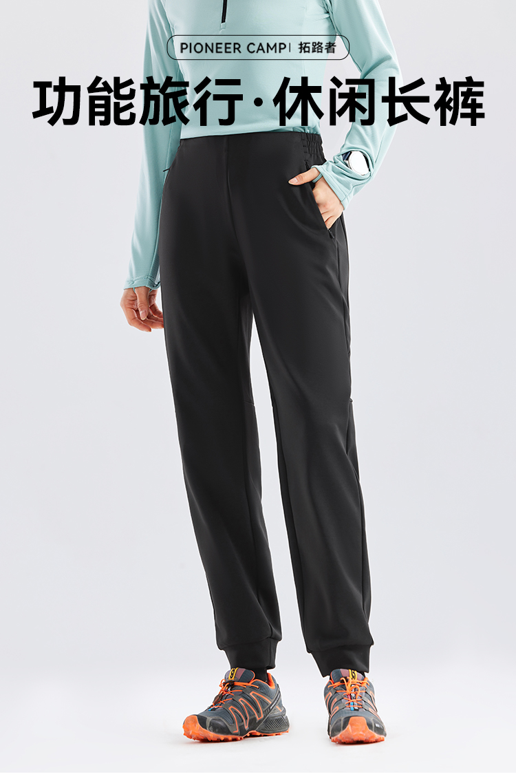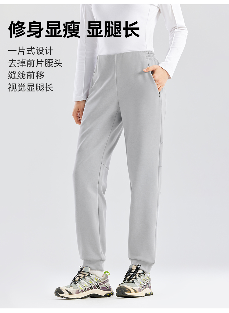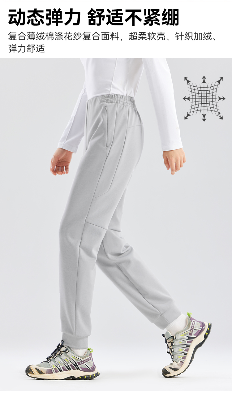 拓路者针织加绒长裤女2025年秋季新款休闲束脚裤运动松紧腰直筒裤