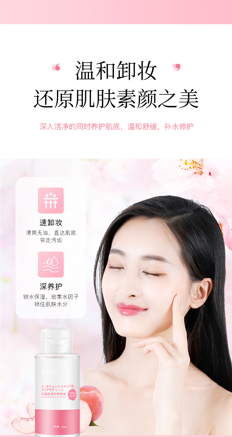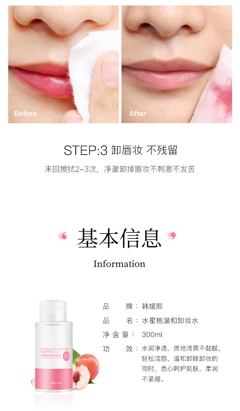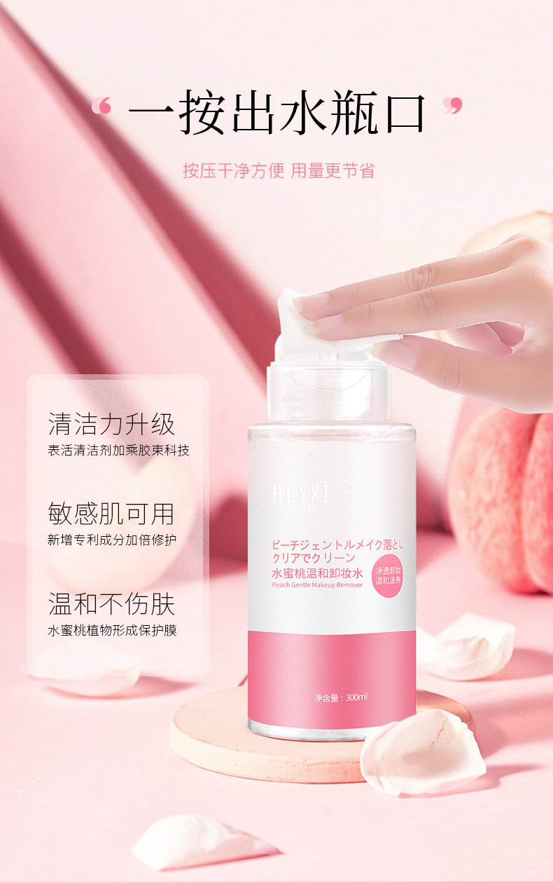韩媛熙HEYXI水蜜桃卸妆水,唇眼温和按压式,深层清洁,300ML。解放肌肤的魔力,引领流行新潮。
