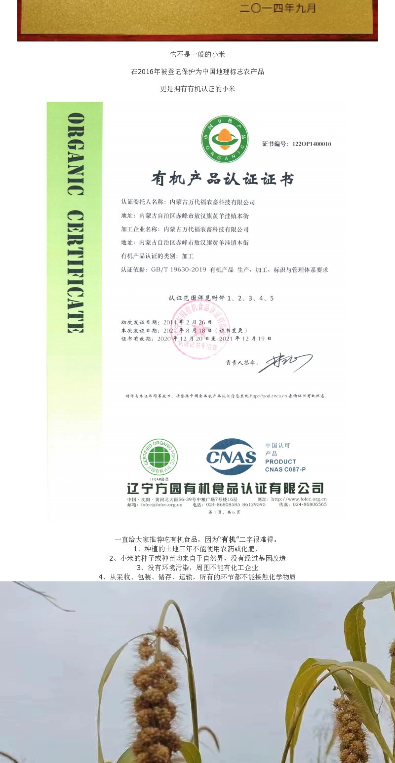 【2021年新米赤峰有机小米】米油丰富好口感健脾养胃内蒙古赤峰毛毛谷小米500g*5包一共5斤装